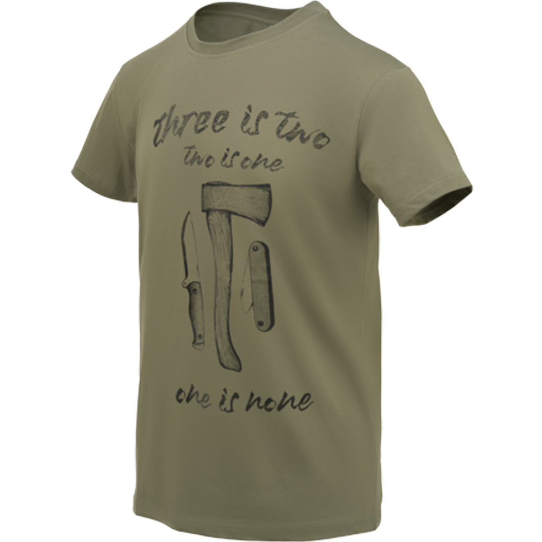 Klassisches Baumwoll-T-Shirt von Helikon mit normalem Schnitt. Drei sind zwei, zwei sind eins, und eins...