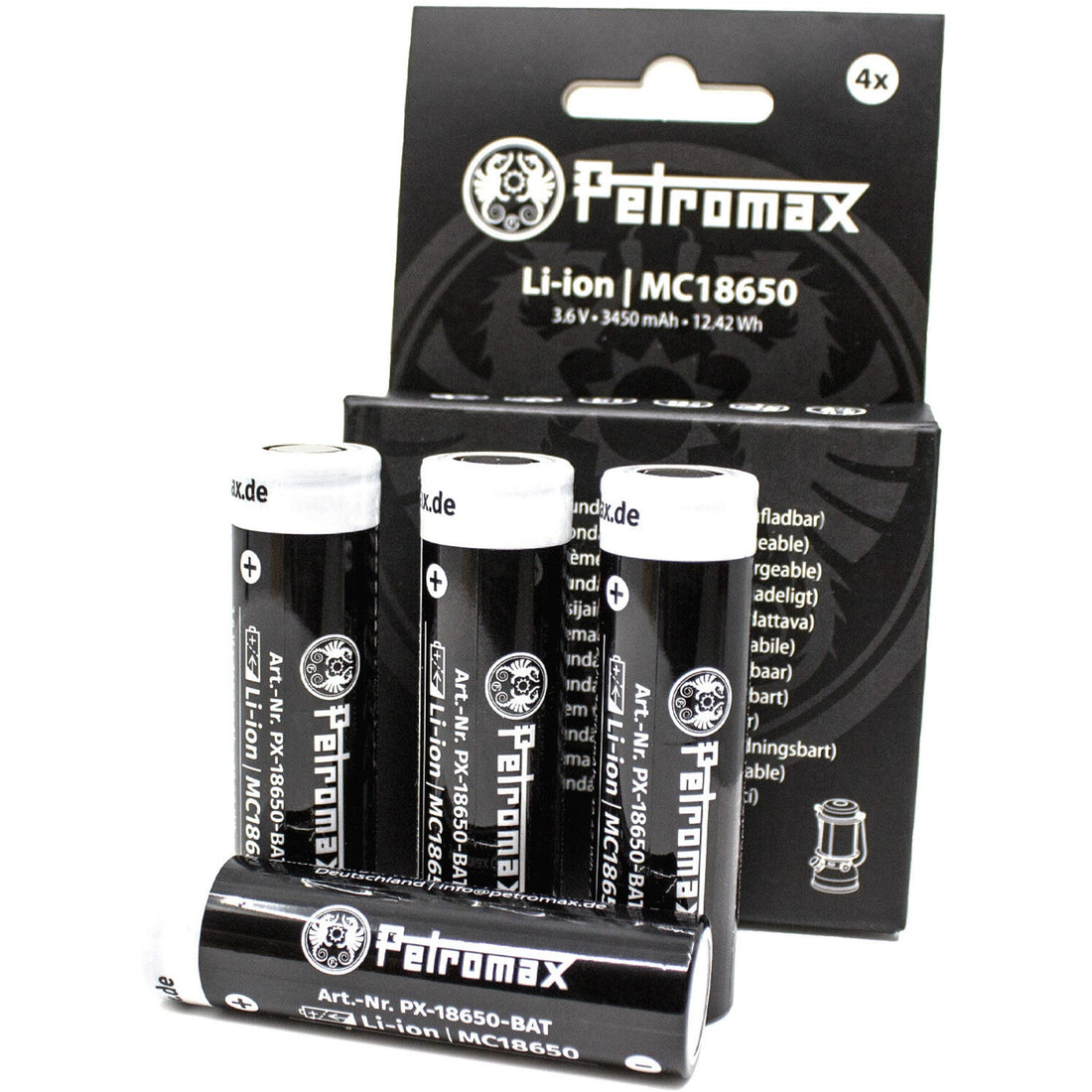 The Petromax 4-pack of 18650 lithium-ion batteries boasts a capacity of 3450 mAh and is...