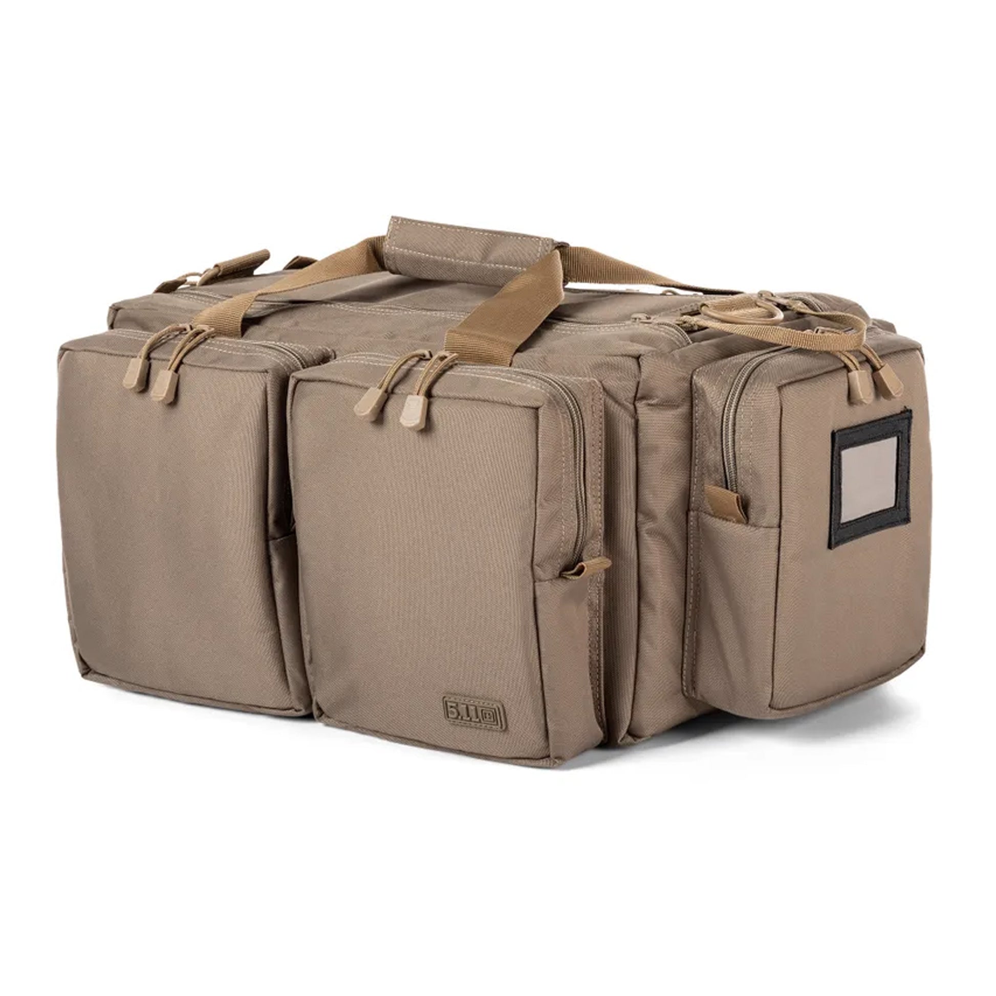 Der 5.11 Tactical Range Ready Bag ist aus haltbarem, wetterfestem 600D Polyester hergestellt. Er verfügt über separate, gepolsterte Fächer für mehrere Pistolen, einen Organizer mit Reißverschluss auf der Vorderseite, in dem 8 Magazine aufbewahrt werden können, sowie Seitentaschen und eine herausnehmbare Munitionstasche. Das erleichtert die Reinigung und stellt die Munitionsversorgung sicher. Mit einem gepolsterten Schultergurt, griffigen Tragegriffen und einem Einsatz für ein Namensschild bist Du im Handumdrehen auf dem Schießstand zu Hause.