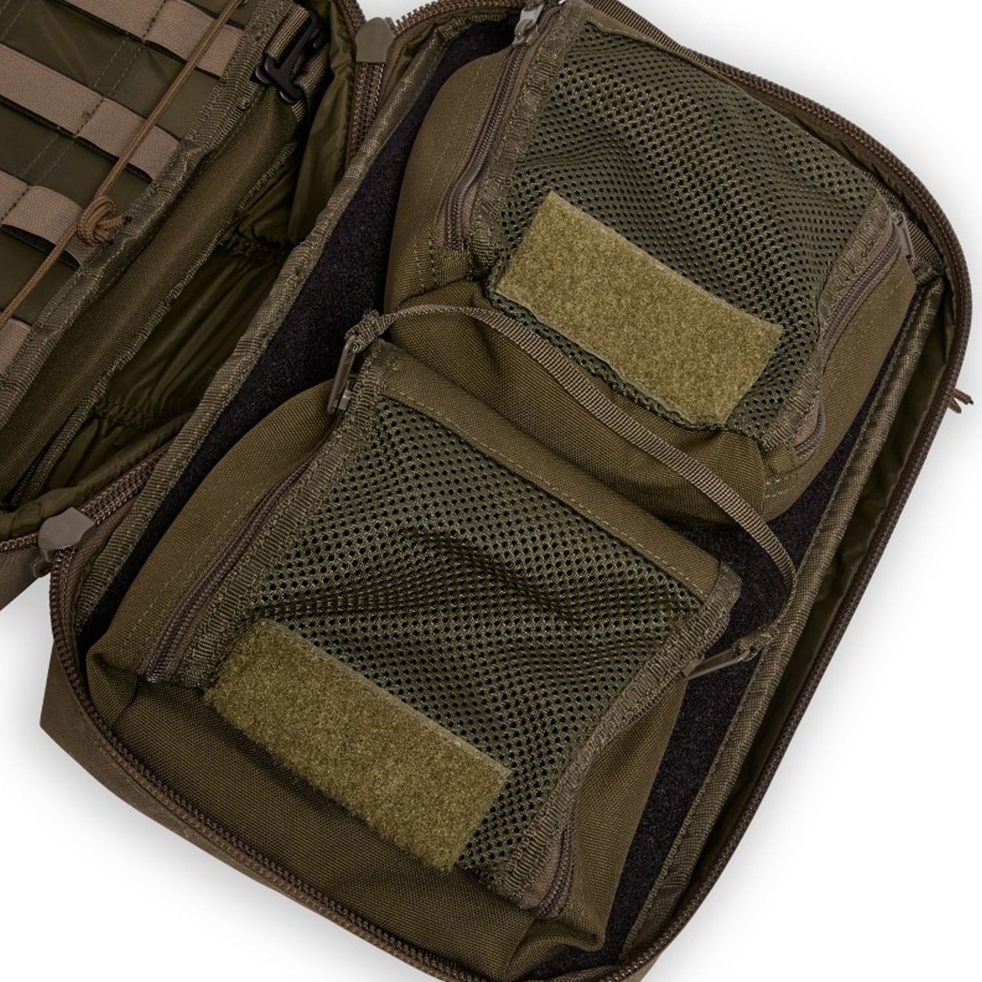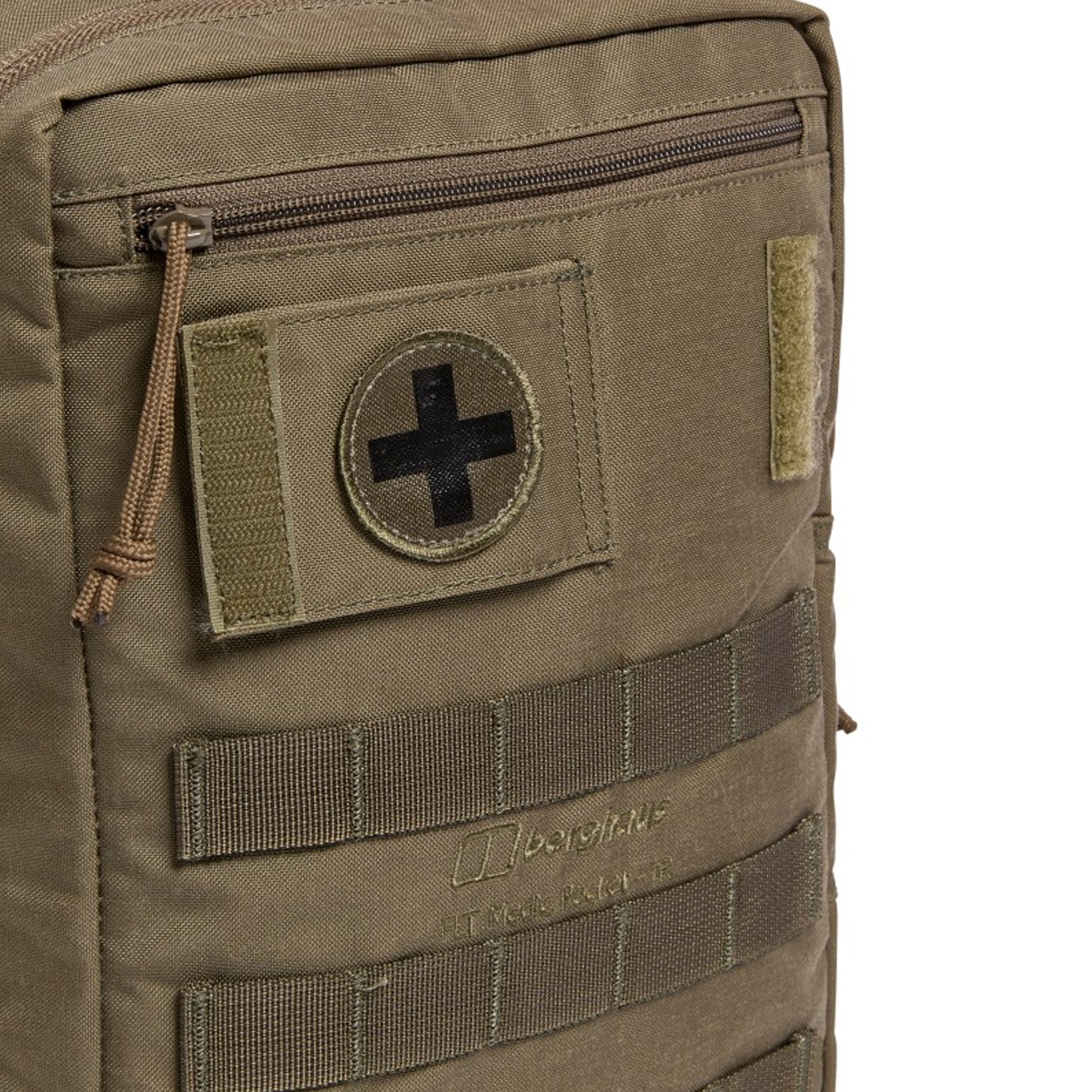 Die Berghaus FLT Medic Pocket IR ist eine Sanitätstasche, welche sich in alle FLT-Rucksäcke integrieren lässt und auch als eigenständiger Rucksack getragen werden kann, wenn der FLT-Schultergurt angelegt wird. Die Sanitätstasche wurde entwickelt, um lebensrettende medizinische Ausrüstung zu verstauen. Das Innere der Tasche kann in jeder beliebigen Konfiguration organisiert werden, indem die 5 verschieden großen Netztaschen am Klett befestigt werden. Neben den Netztaschen besitzt die Medic Pocket noch eine Klettpaneele und eine Medic-Paneele mit elastischen Schlaufen zur Befestigung von medizinischer Ausrüstung.