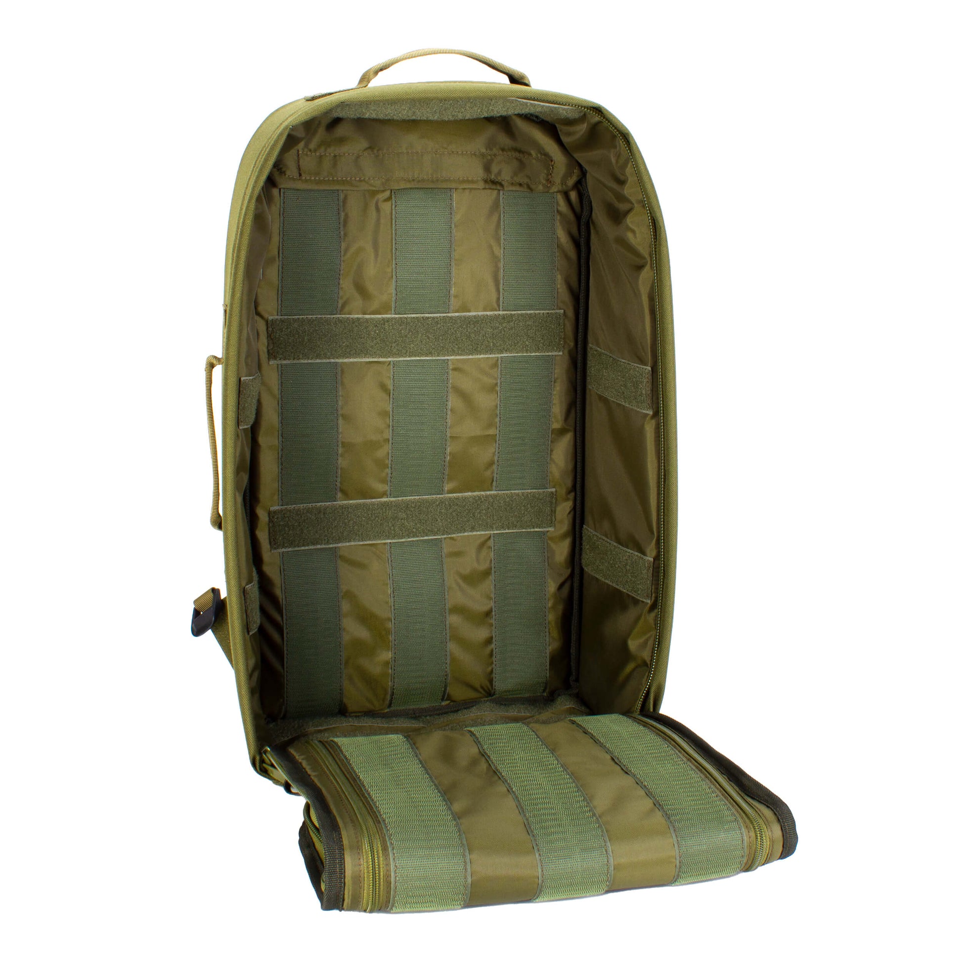 Der Einsatzbereich des auch eigenständig nutzbaren Rucksacks ist vielfältig. So lassen sich im inneren die Bereiche einzeln aufteilen, um somit flexibel auf jedes Einsatzgebiet reagieren zu können. Sei es für Kameraausrüstung, als Drohnenrucksack oder für den Medic-Bedarf.