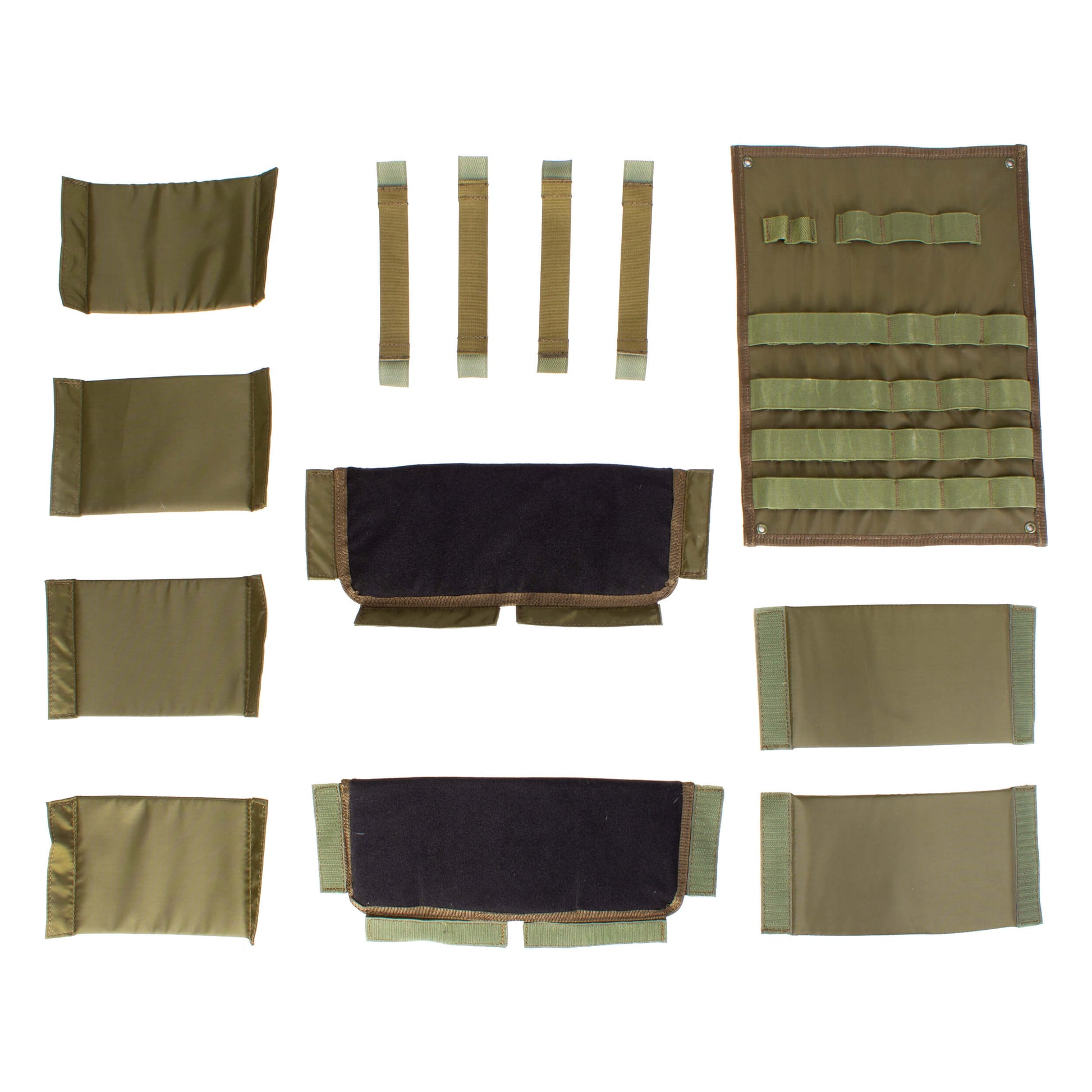 Weiterhin ist in der Frontklappe neben den durchgehend vollflächigen Zwischenebene, von Innen noch Klett-Pad angesetzt. Dieses bietet z.B. die Aufnahme für Kabel, Ampullen oder Stifte.