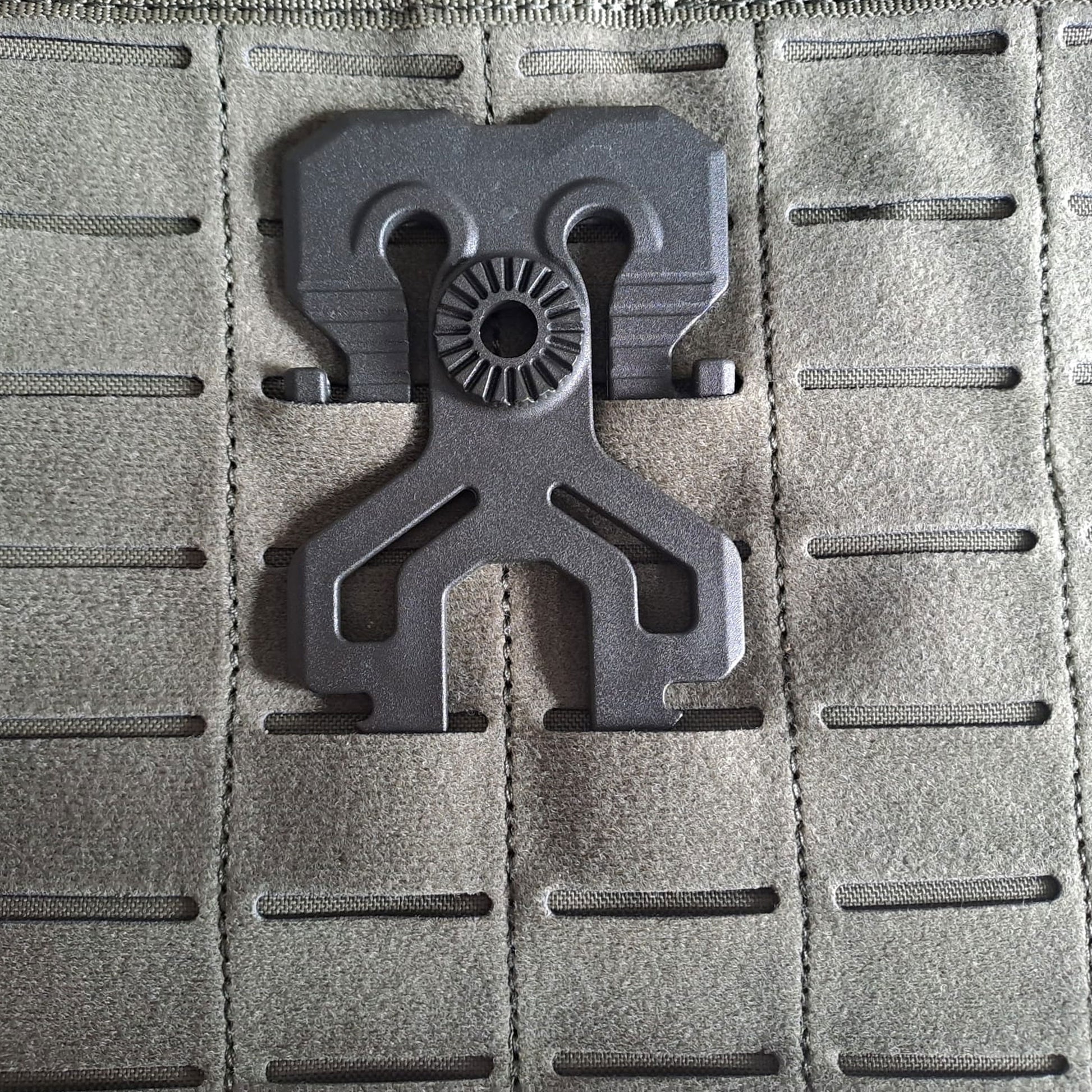 Das kompakte Design benötigt nur zwei MOLLE-Reihen, während das Ratschendesign sich an verschiedene MOLLE-Designs anpasst und jede übermäßige Bewegung beseitigt. Ein einziger Drehpunkt ermöglicht es, den bevorzugten Winkel für die Installation zu wählen.