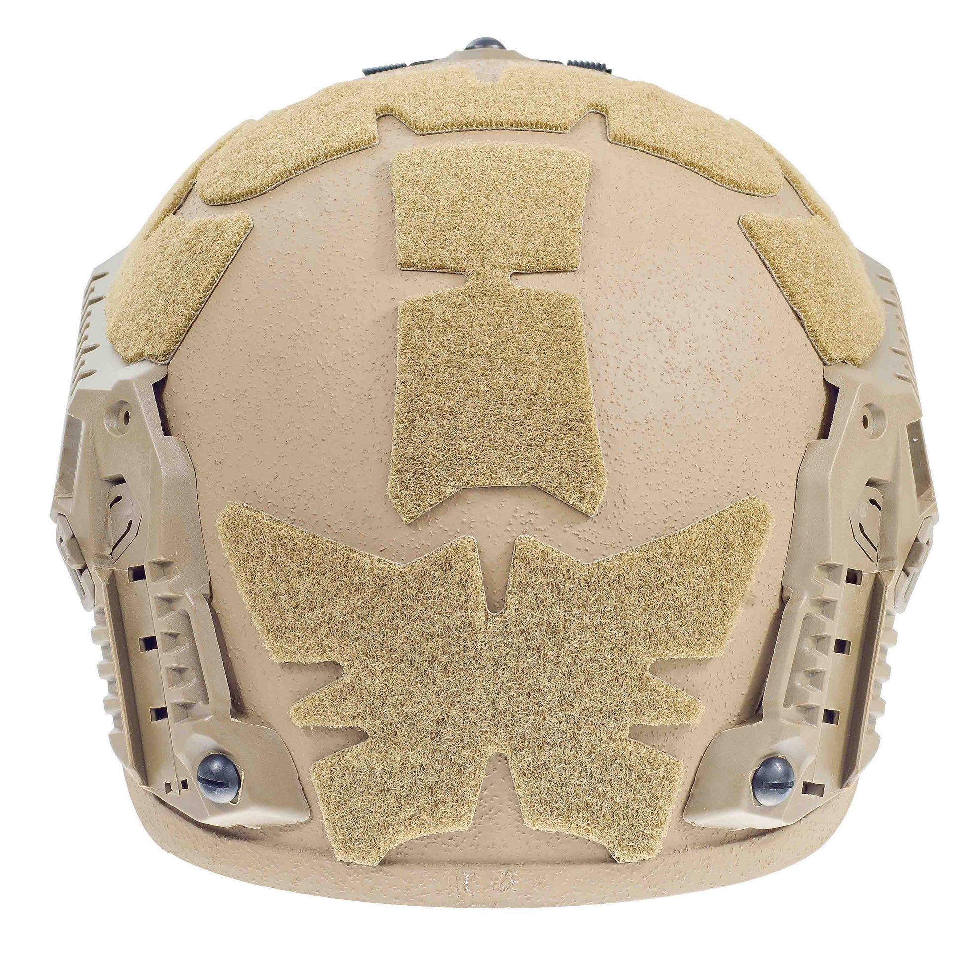 Der Helm ist auf der Stirnseite mit einer NVG-Abdeckung ausgestattet, die mit drei ballistischen Bolzen befestigt ist. Die NVG-Halterung besteht aus strapazierfähigem PA6-Polymer mit Aluminium-Basisabdeckung für höhere Festigkeit und Haltbarkeit. Die universelle Abdeckung ist kompatibel mit den meisten gängigen NVG-Montagearmen und bietet eine sichere Befestigung für Videokameras, Lampen und andere Komponenten.