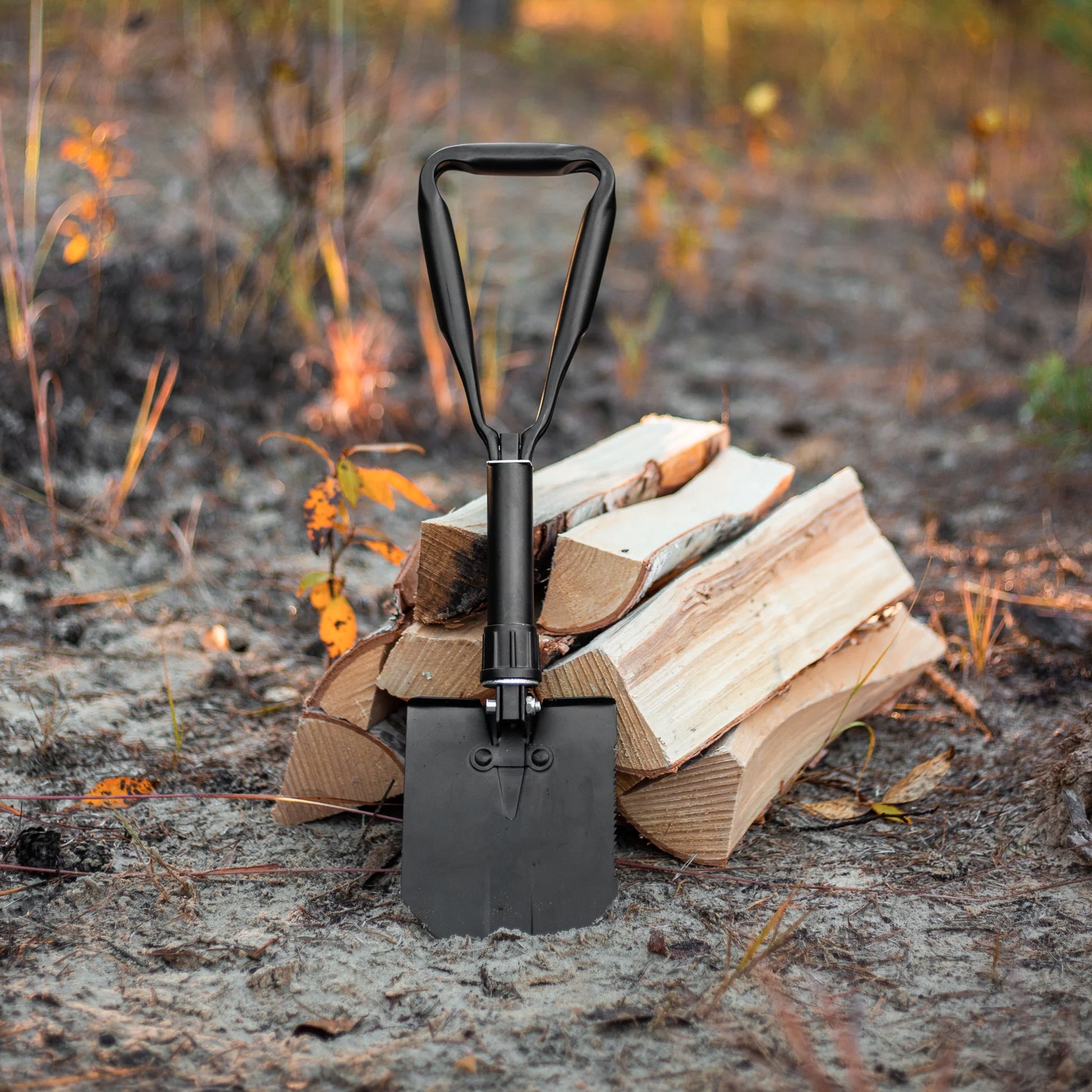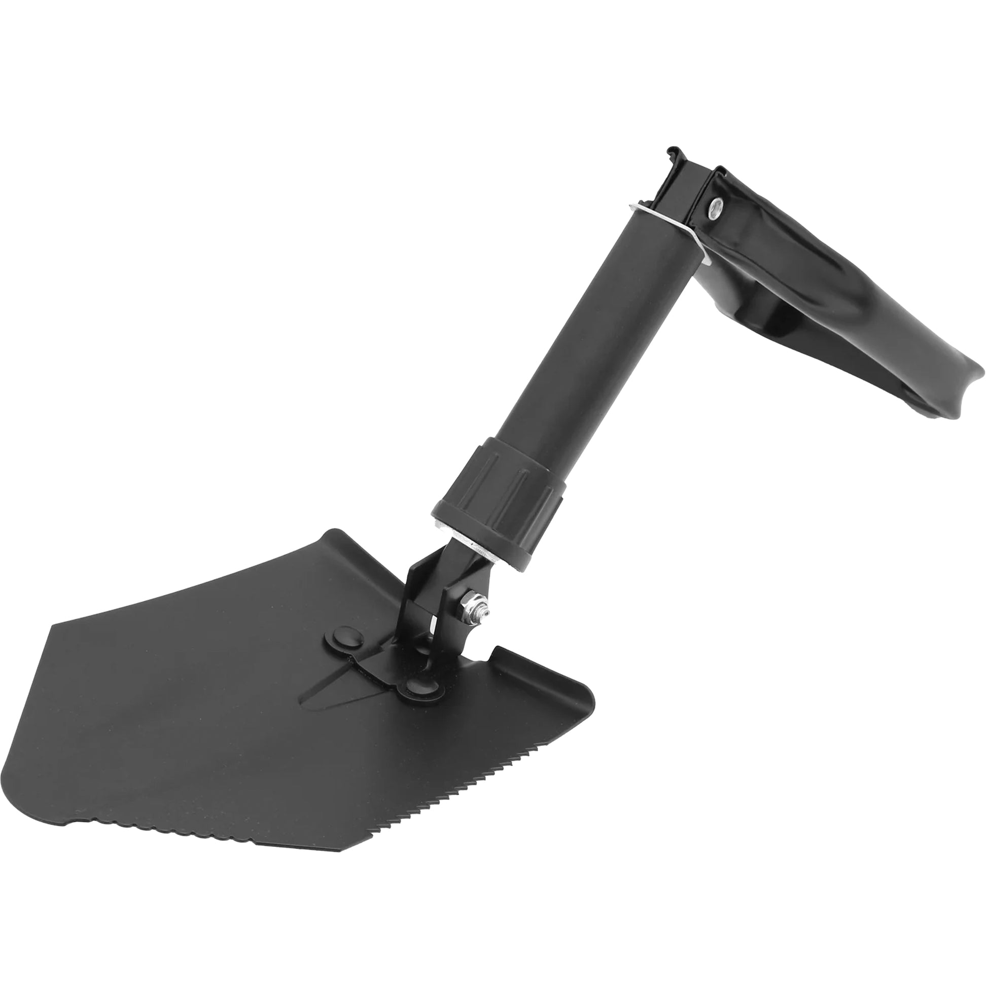 - Kleiner und handlicher Spaten, mit einem Handgriff aufgeklappt