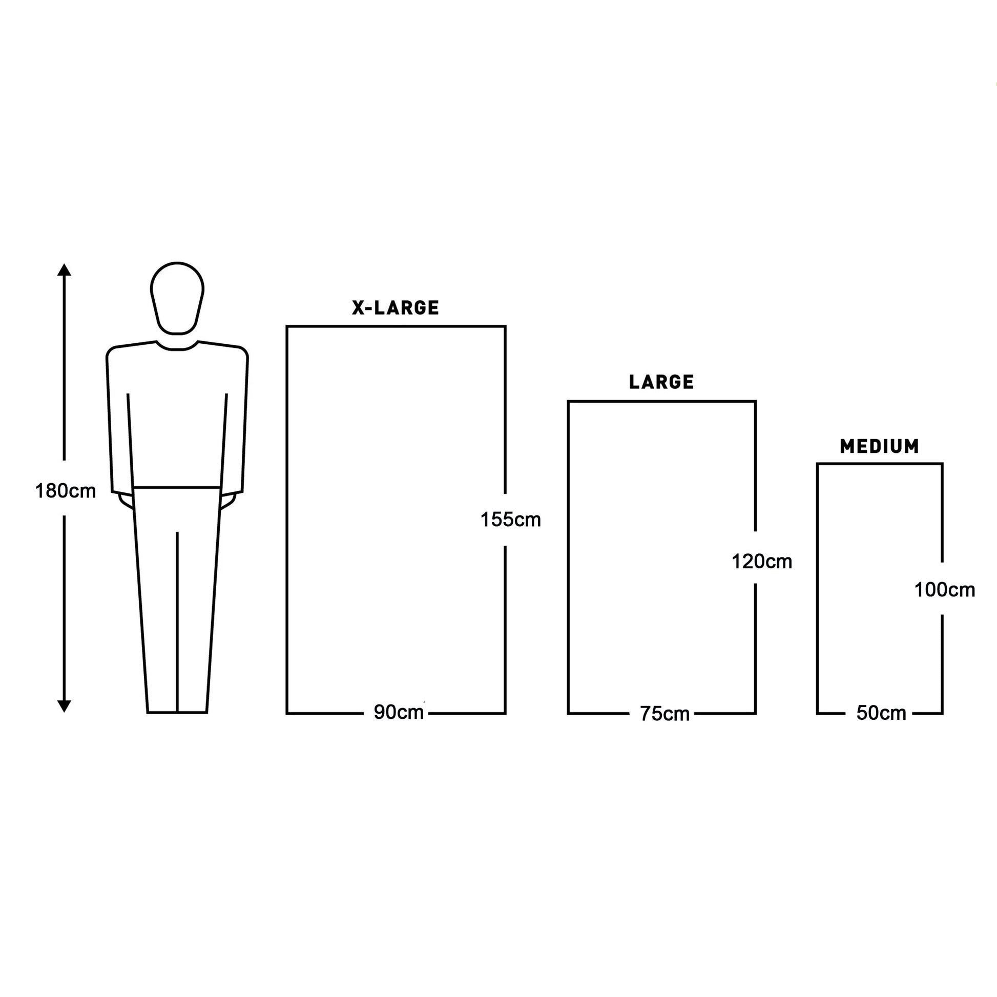 Size XL: 90 x 155 cm; 260 g