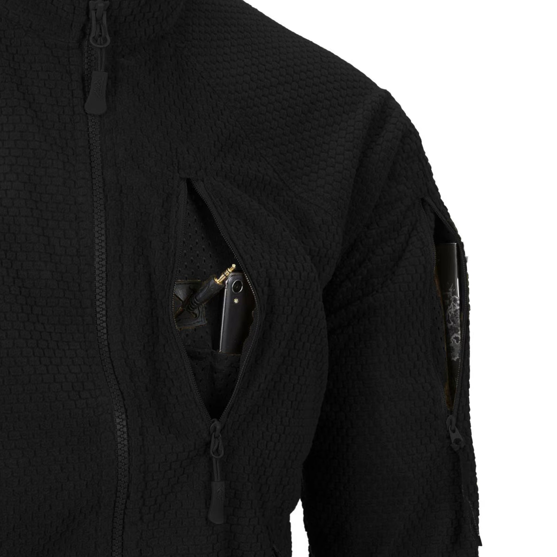 Die Alpha Tactical Grid-Fleece Jacket von Helikon ist eine Basisisolationsschicht aus der Urban Tactical Linie, die zum Tragen in Verbindung mit Softshell oder Hardshell oder allein für sich getragen werden kann.