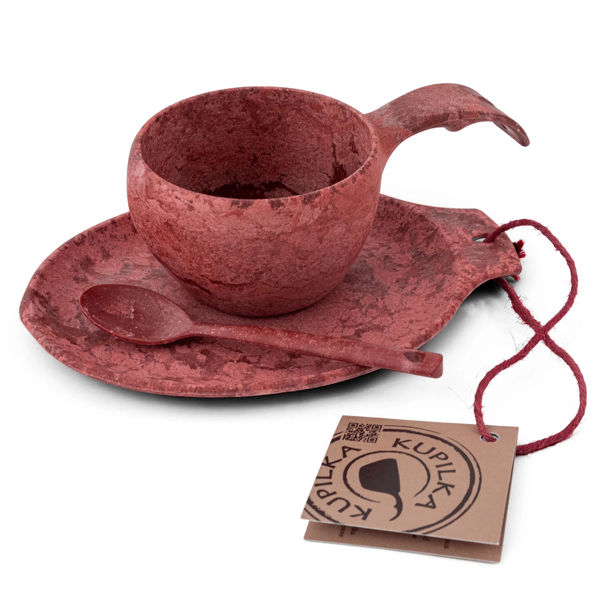 KUPILKA bedeutet, kleine Tasse”. Es ist abgeleitet von, „Kuppi”, dem finnischen Wort für Tasse. Es stammt aus der Zeit vor dem ersten Weltkrieg als finnische Frauen und Männer während der harten Finnischen Winter sich beim Trinken mit der „Kupilka” oder kleinen „Tasse” sich die Hände aufgewärmt haben. Die KUPILKA Produkte werden aus einem Biomaterial hergestellt. Das Biomaterial besteht aus einem Naturfaser-Verbundmaterial, das aus 50% Holzfasern und 50% aus Plastikmaterial (Polypropen) zusammengesetzt ist. Verglichen mit Plastik sind die Vorteile des Naturfaser-Verbundmaterials neben der besseren Hitzebeständigkeit und höheren Nutzungsdauer vor allem die solide Konstruktion. Im Vergleich zu Holz muss das Material nicht gepflegt werden. Zudem nimmt es keine Gerüche auf und ist feuchtigkeitsbeständig. Alle KUPILKA Produkte sind spülmaschinengeeignet. Hochqualitatives Design in Verbindung mit neuen. Technologien ehrt die Natur mit umweltfreundlichem Geschirr. Kupilka ist Ihr bester Gefährte in der Natur.