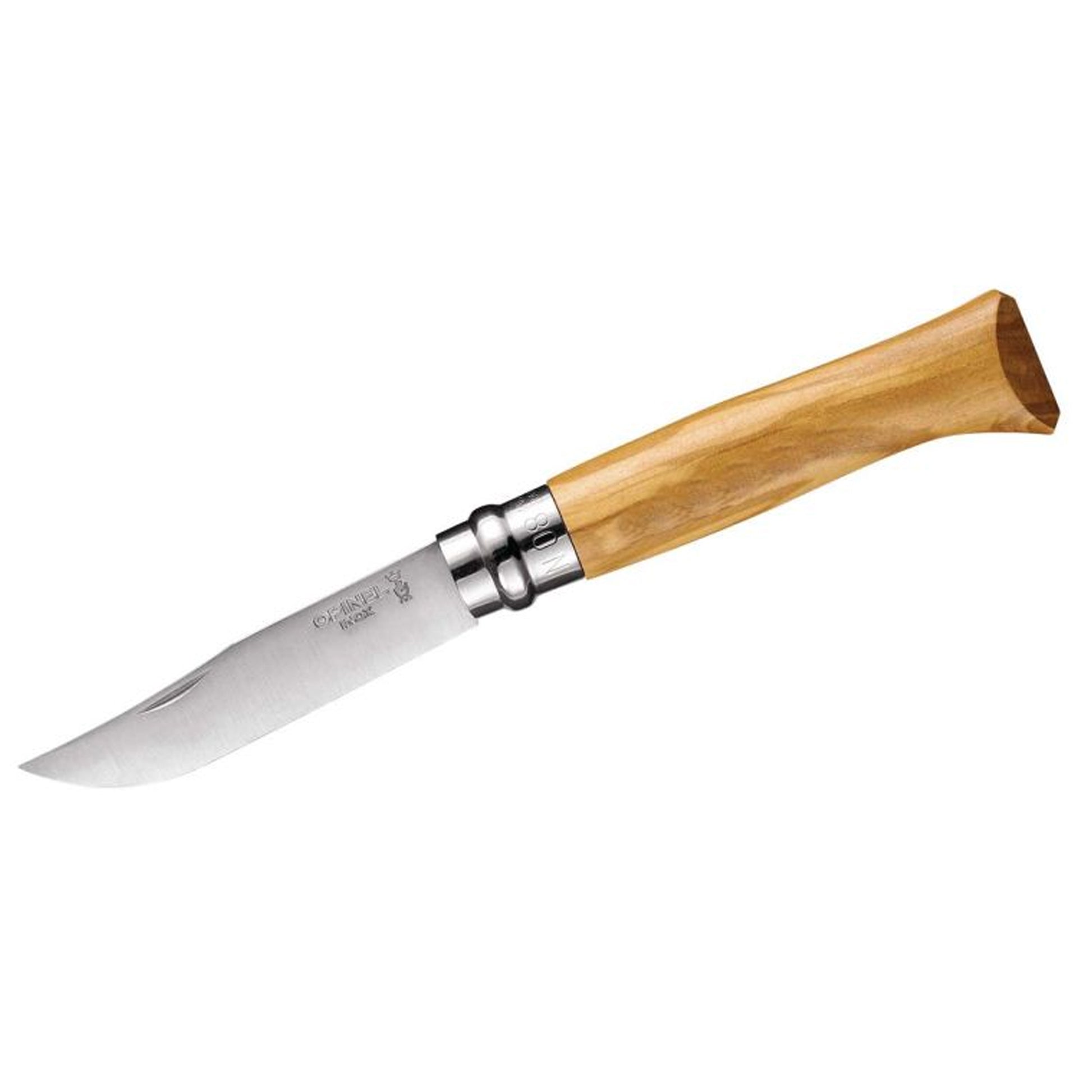 Ideal als Geschenk! Das Opinel N°08 Taschenmesser mit rostfreier Klinge und bildschönem Olivenholzgriff.