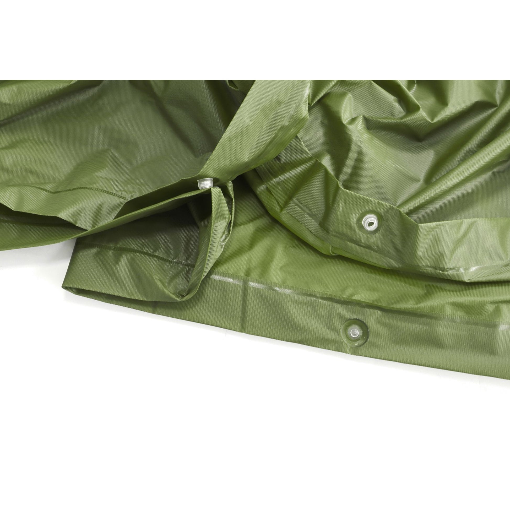 Die versiegelten Nähte in Kombination mit den Druckknöpfen entlang der Seitenkanten sorgen für besten Schutz auch bei stärkerem Niederschlag.