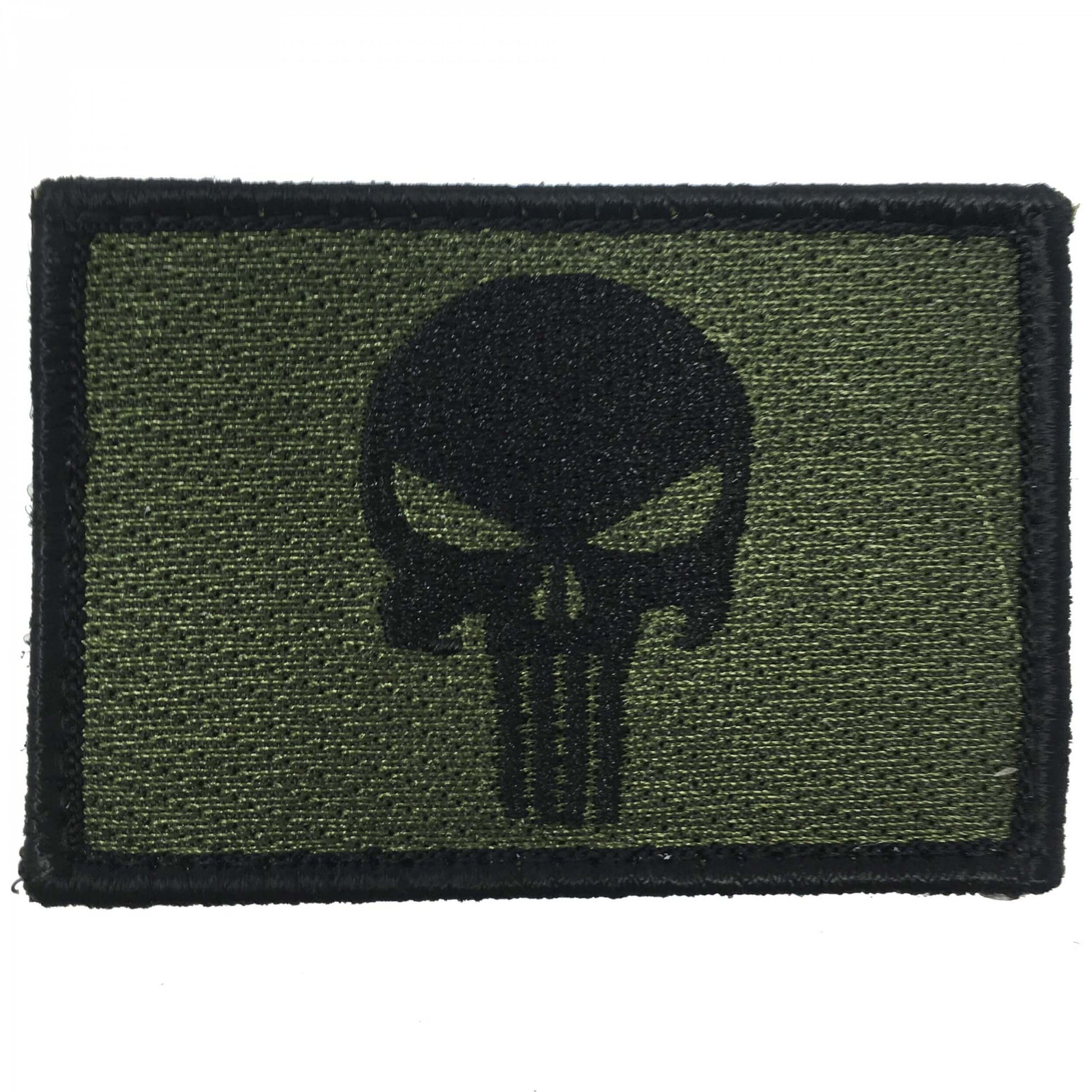 Punisher Totenkopf Stoff Patch Oliv/Schwarz