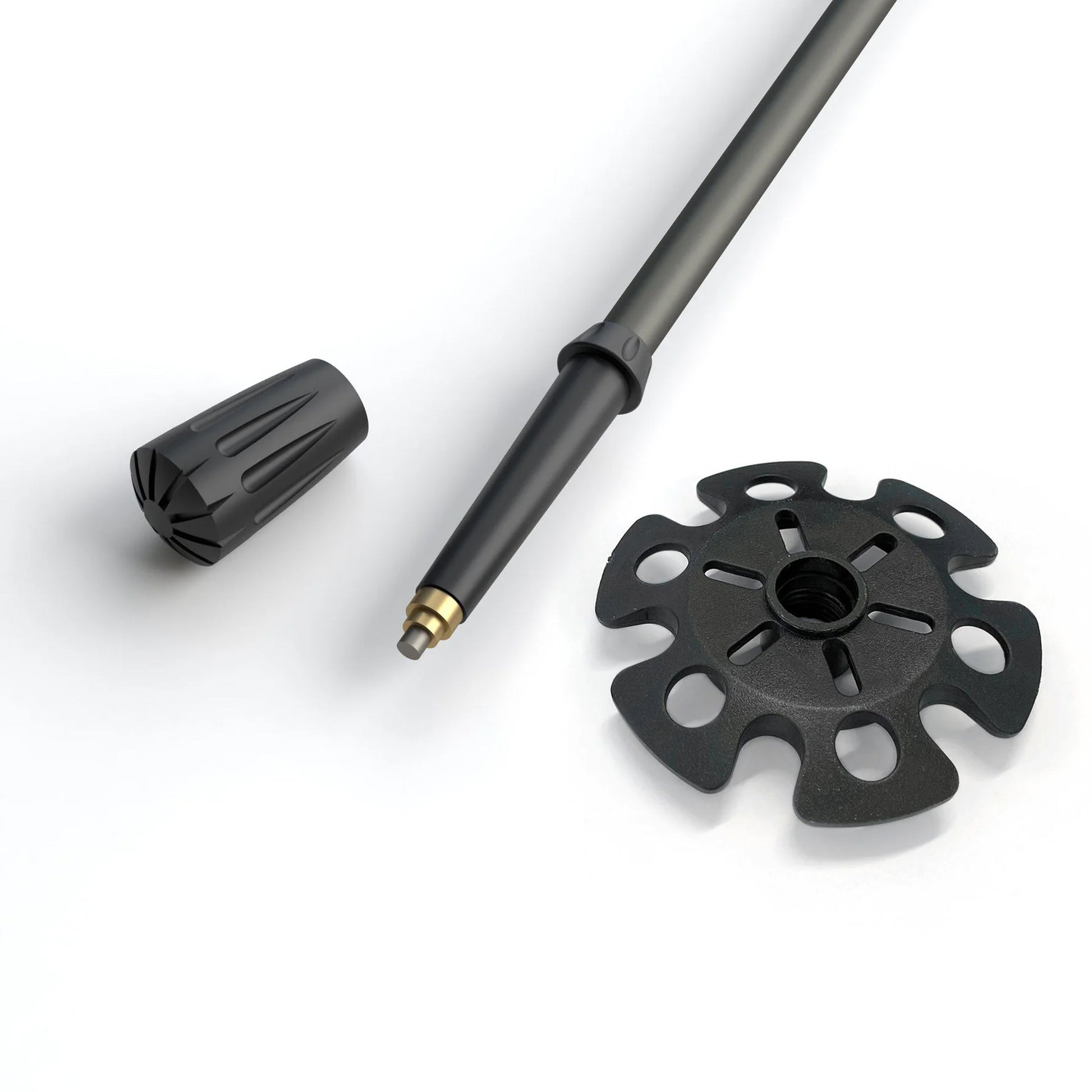 Diese Wanderstöcke kommen mit abnehmbaren Schneeteller, die an den Stockspitzen befestigt werden können, und Gummifüße, die auf harten Oberflächen für gute Dämpfung sorgen. Die Spitzen aus Wolfram sind konkav für noch besseren Halt auf Trails und unwegsamem Gelände.