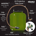 The WLPS Hydration System from SOURCE features a user-friendly Widepac™ sliding closure, which is airtight and allows for easy refilling and cleaning through the wide opening.