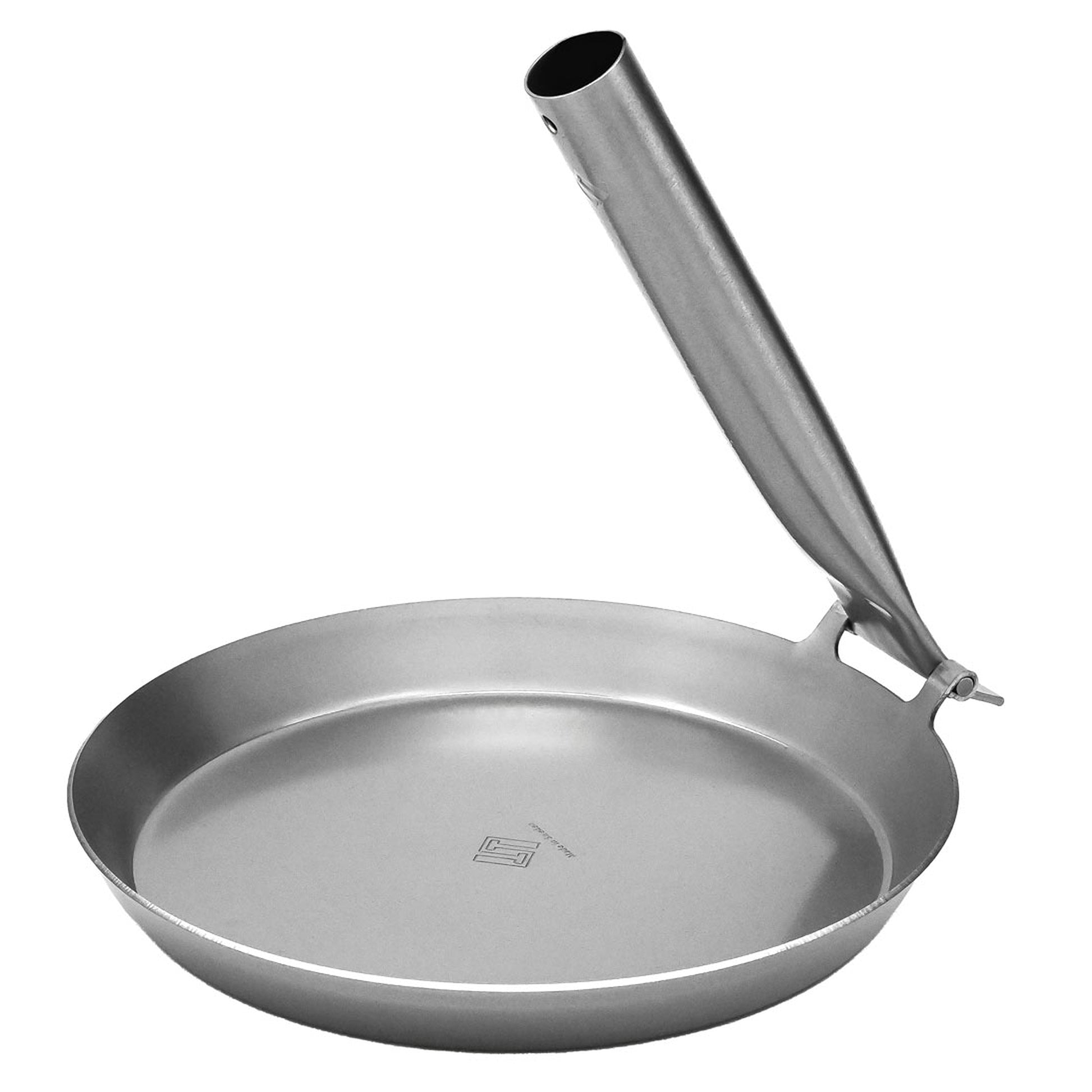 Die Stailotherm Jägerpfanne Original S2, ist eine Weiterentwicklung des Jägerpfanne Original S1. Dieses Modell ist mit einem klappbaren Rohrgriff ausgestattet, der mit einem Stock aus der Natur verlängert werden kann.