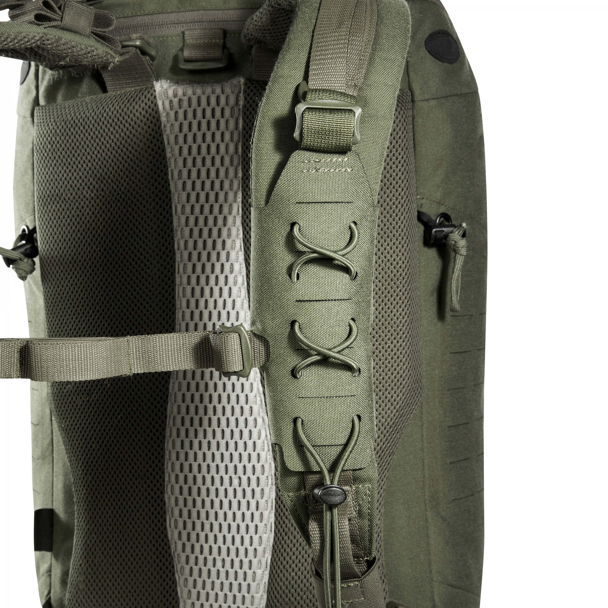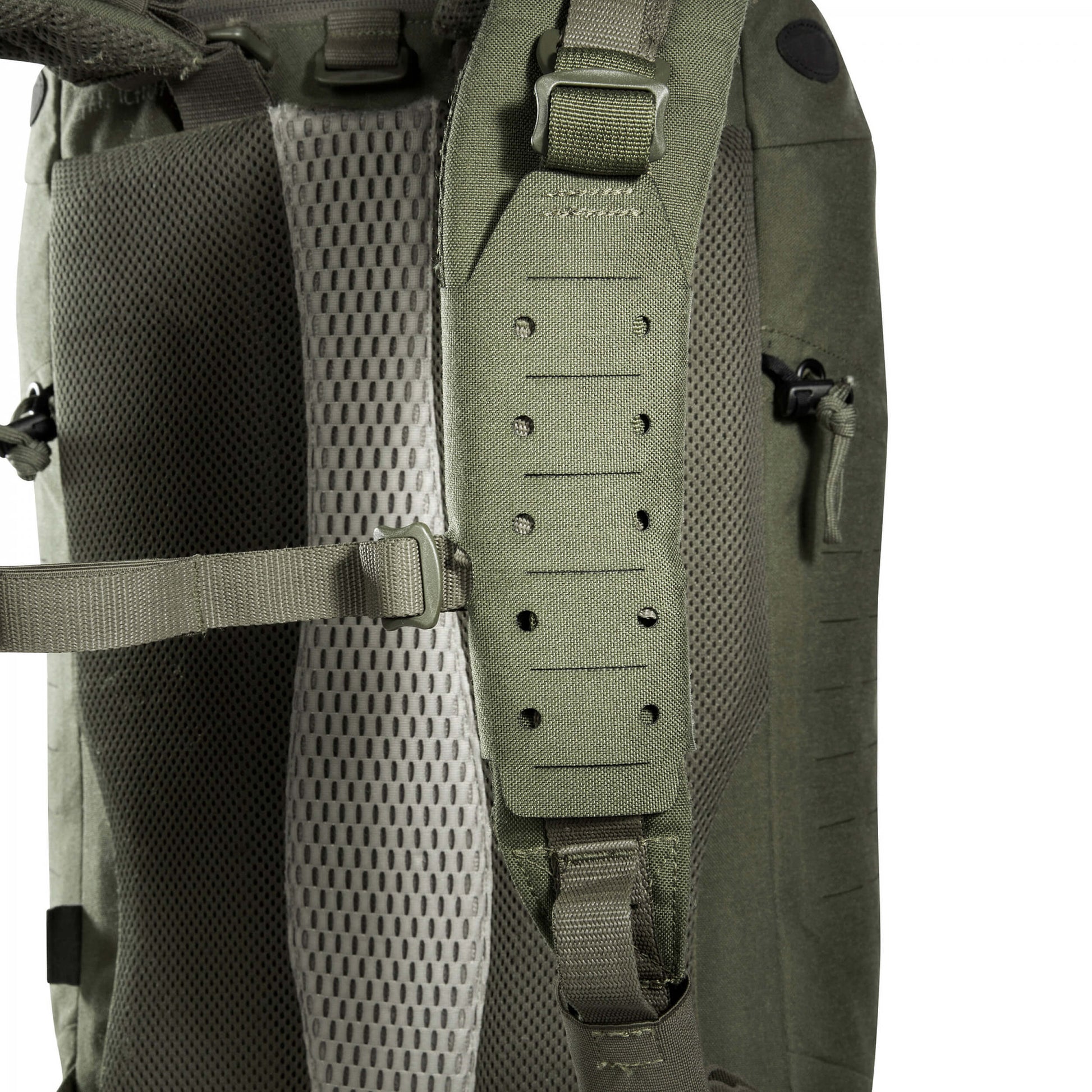 • Zum Befestigen von MOLLE-Pouches oder Zubehör auf dem Schulterträger eines Rucksacks