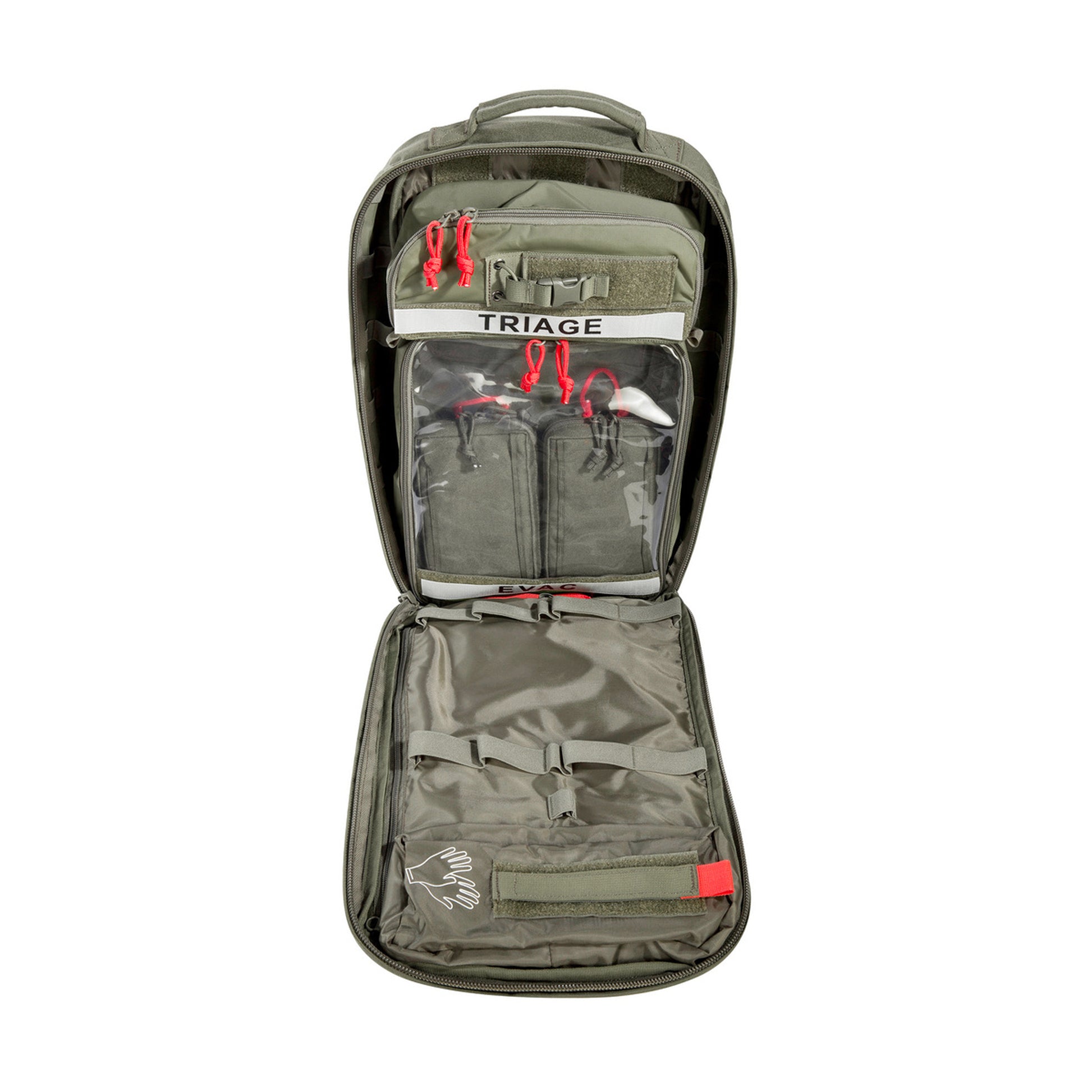 Der Tasmanian Tiger Medic Mascal Pack (MASCAL = Mass Casualty) dient der Erstversorgung verletzter Personen, wenn diese nicht sofort individuell behandelt werden können. Der Rucksack ist auf der Front mit vier IFAK-Pouches für den schnellen Zugriff ausgestattet, die Innenaufteilung ist zur Bestückung mit Materialien für Notfall-Einsätze mit vielen Verletzten konzipiert. Die Seiten des Rucksacks sind mit MOLLE in Lasercut-Ausführung versehen.