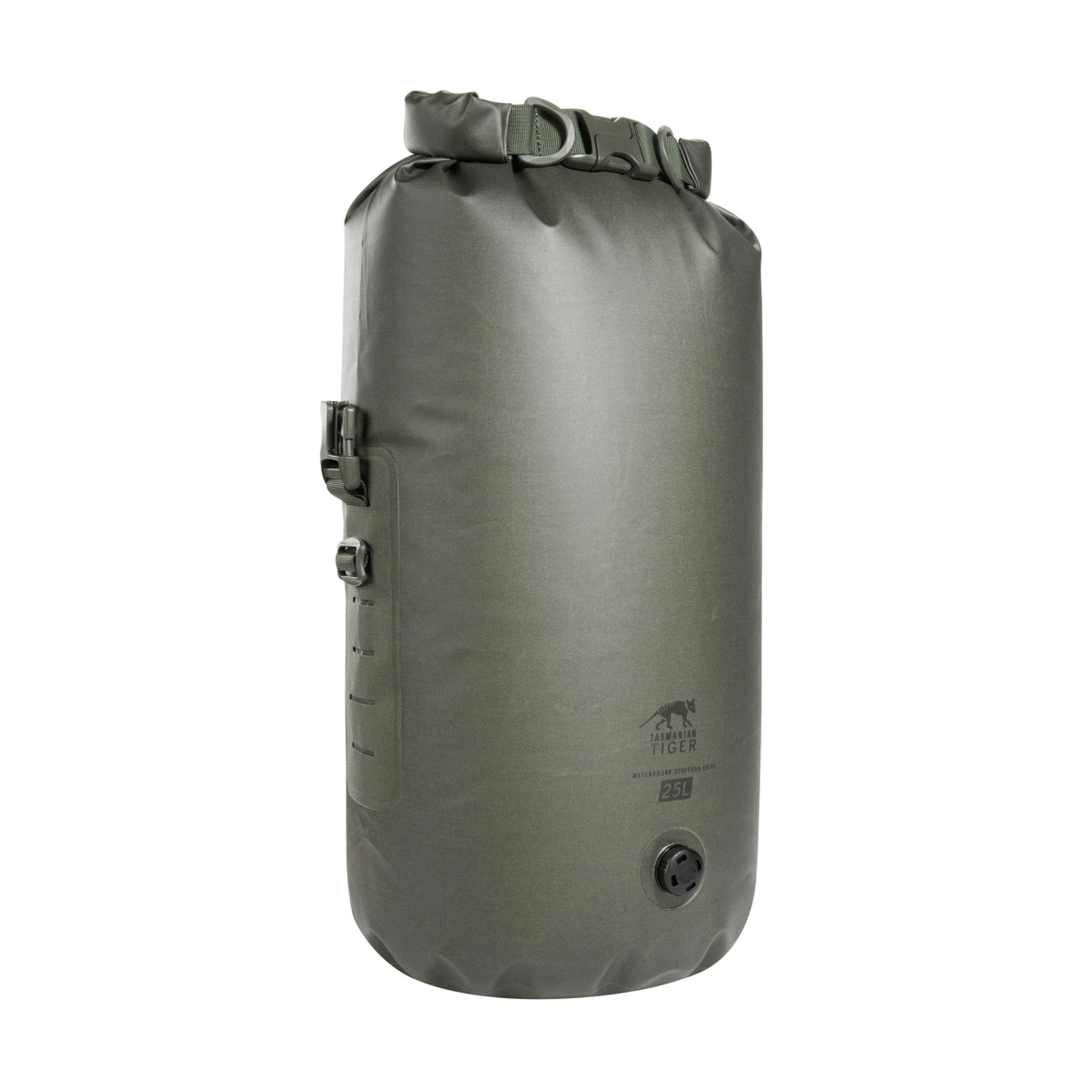 Der wasserdichte Tasmanian Tiger TT Stuffbag 25 WPV Packsack besitzt ein Rollverschluss und ein Ventil zum Komprimieren.