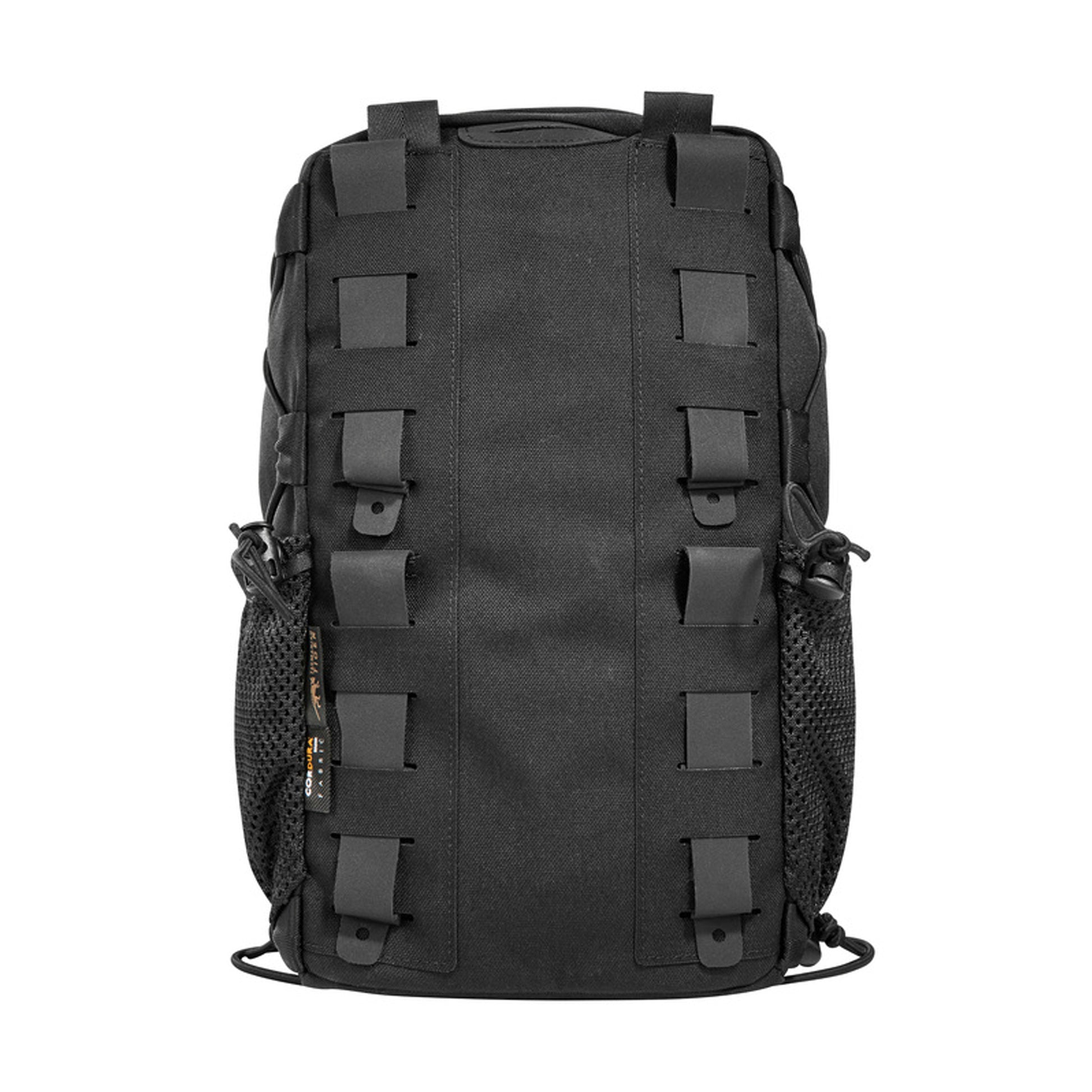 Die Tasmanian Tiger Tac Pouch 11 MKII ist eine leichte, komprimierbare Mehrzwecktasche mit elastischen Seitenteilen, zur Befestigung an Plattenträgern und Rucksäcken. Die TT Tac Pouch 11 mit 7 Liter Volumen bietet durch den Mittelreißverschluss einen schnellen Zugriff. Die funktionale Innenaufteilung des Hauptfachs mit MOLLE-Klett und Bungee-Cord kann zum Beispiel für medizinische Ausrüstung genutzt werden. Die Tasche verfügt zudem über seitliche Einstecktaschen aus Netzgewebe, z.B. für Magazine, und MOLLE in Lasercut-Ausführung sowie eine Flauschklettfläche auf der Front. Das gesamte System ist mit Bungee-Cord flach komprimierbar. Die Tasche ist zudem mit einer Trinksystemvorbereitung und dem entsprechenden Ausgang ausgestattet.