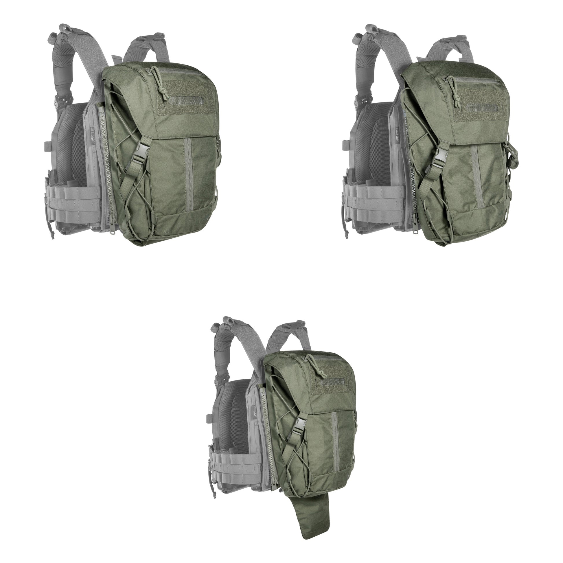 Der TT Turtle Pack ZP ist konzipiert für den TT Plate Carrier QR LC ZP, die Befestigung erfolgt über seitliche Reißverschlüsse.