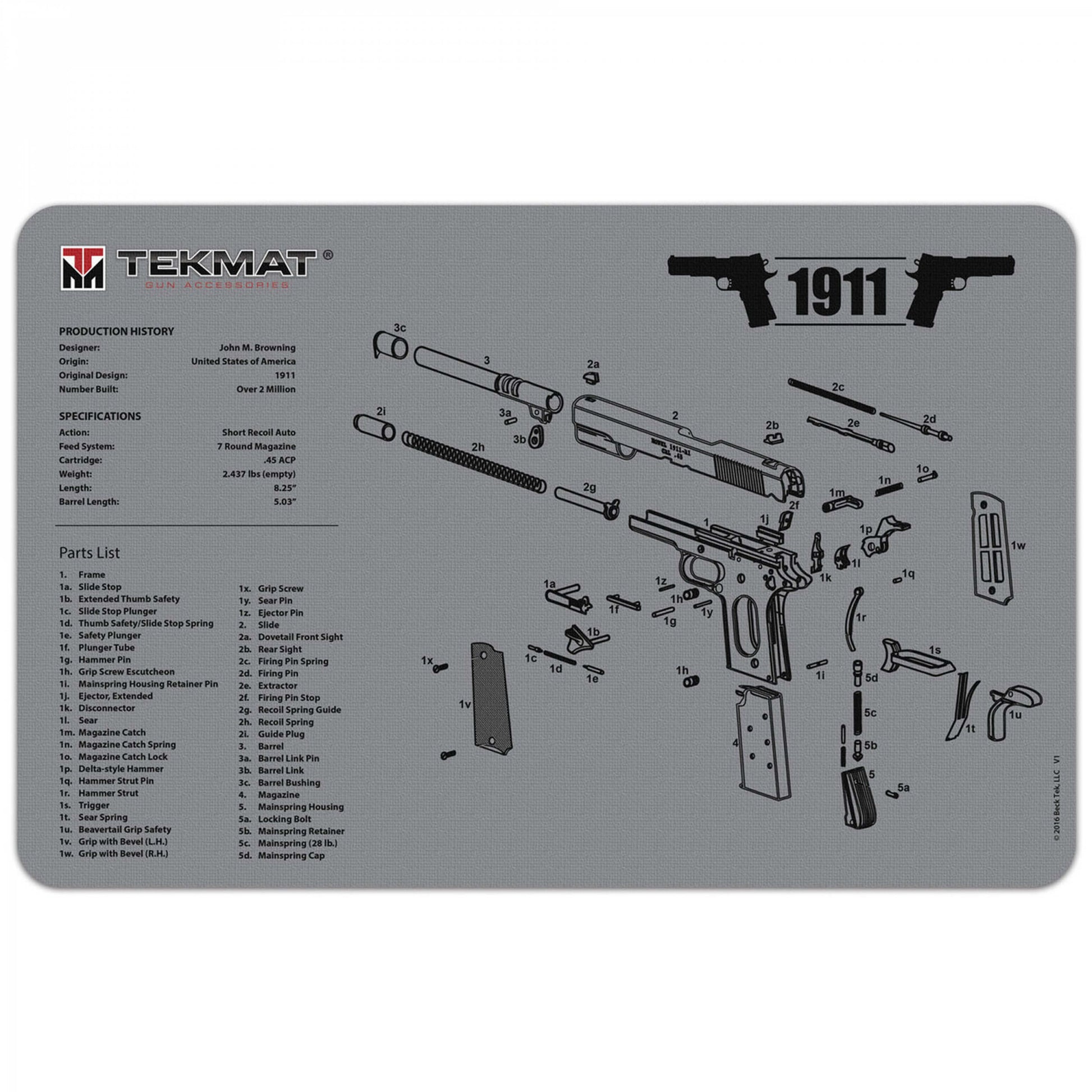 Mit den Explosionszeichnungen und der zugehörigen Teileliste können Reparaturen, die Demontage der Waffe oder die Grundreinigung viel schneller und angenehmer durchgeführt werden. Waffen sind extrem faszinierend und die Zeichnungen und Daten, die auf jeder TekMat Reinigungsmatte aufgedruckt sind, sorgen für Unterhaltung und informieren Sie darüber, wie Ihre Waffe funktioniert.