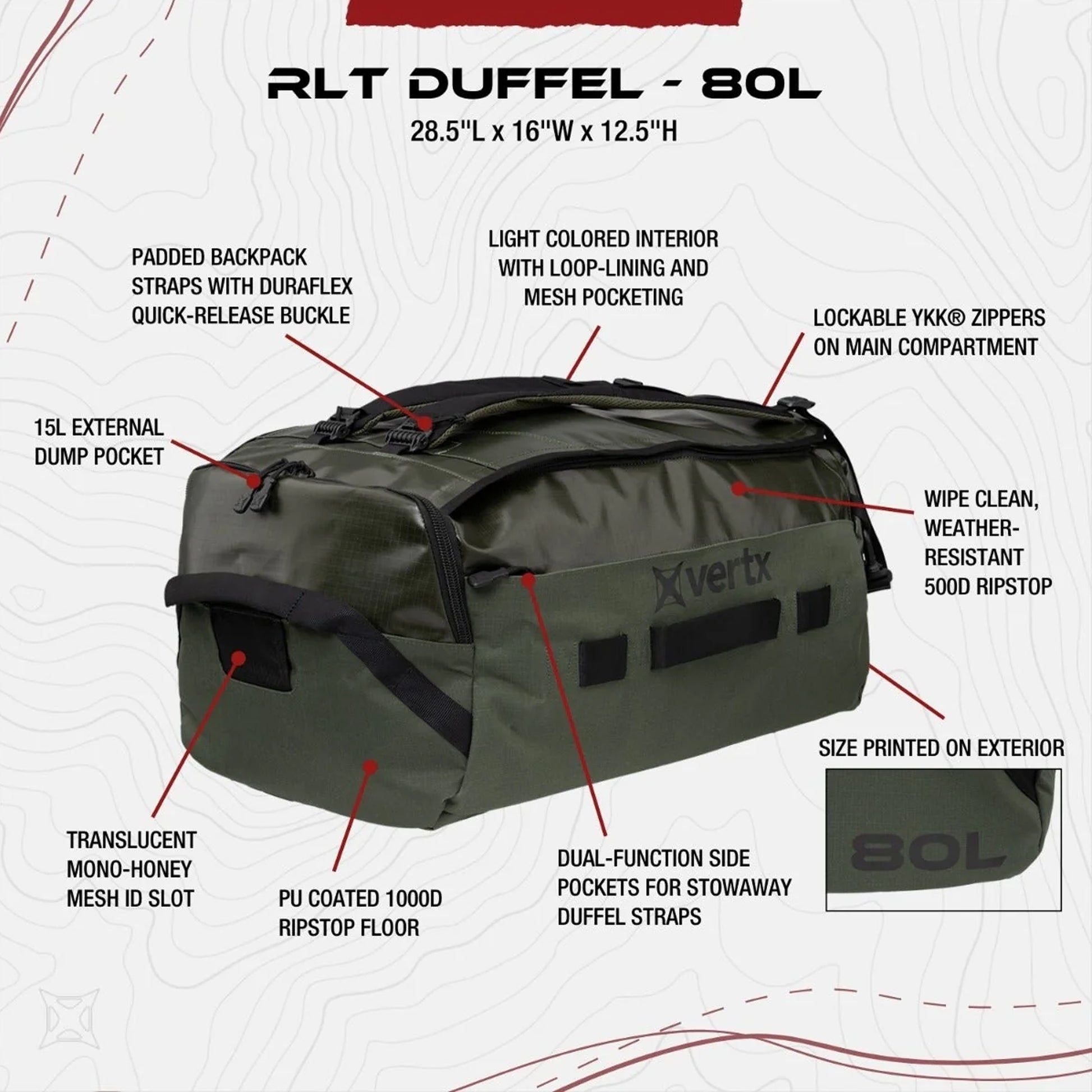 Für Abenteuer und harte Einsätze, brauchst Du robuste und verlässliche Ausrüstung, die alles mitmacht. Der Vertx RLT 80L Duffel Bag bildet die Brücke zwischen Einsatztasche und ausgewachsenem Expeditions-Duffel: nicht zu klein, nicht zu groß. Von Reisen bis zu harten Abenteuern, auf den „Road Less Traveled“ Duffel ist Verlass!