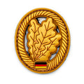 Der PVC Patch für die Jägertruppe der Bundeswehr zeigt das stilisierte Truppengattungabzeichen, das diese Infantrieeinheit am Barett trägt. Das in gold gehaltene Abzeichen zeigt ein umrandetes Eichenblatt, sowie die eingelassene deutsche Flagge.