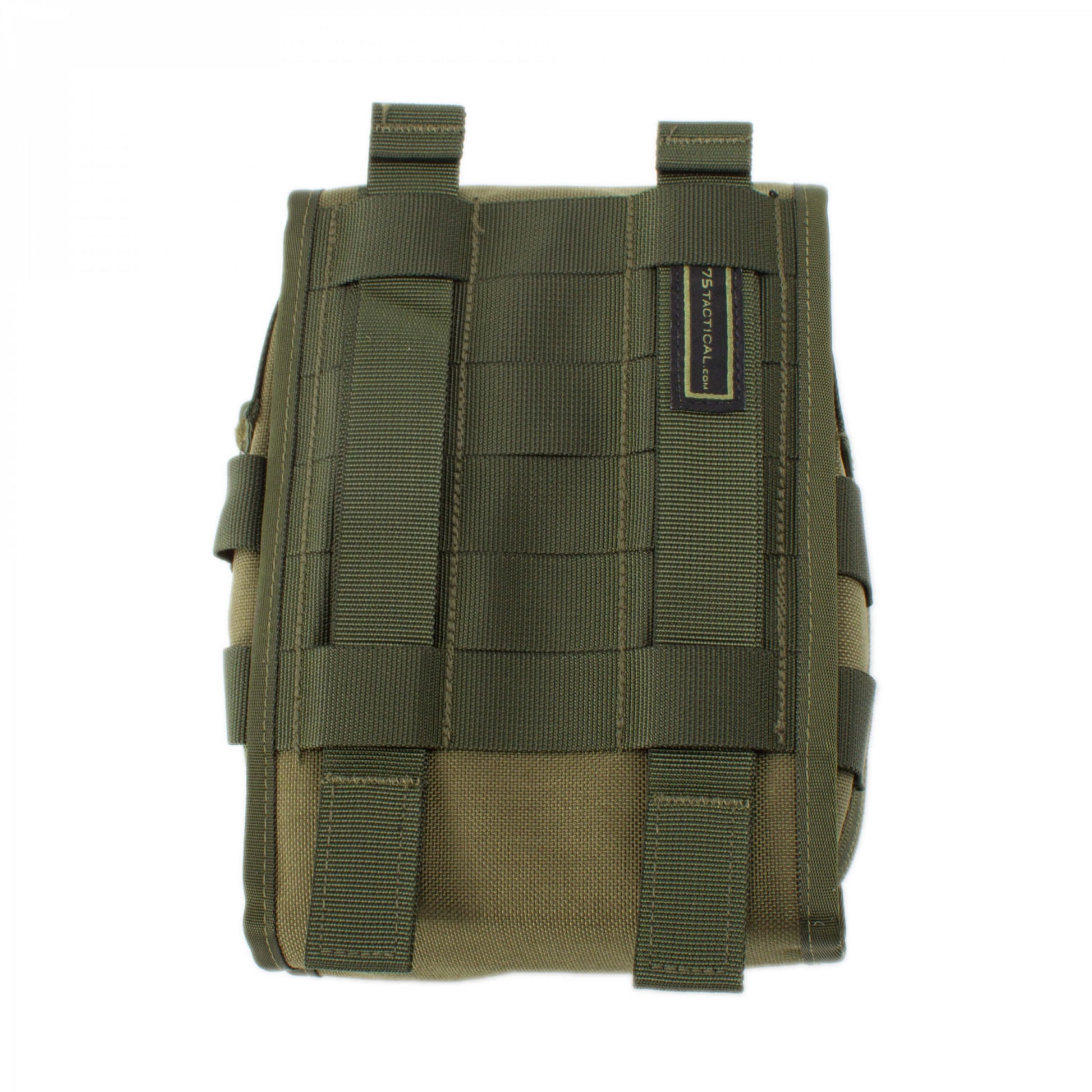 Die 75Tactical San Tasche SA9 besteht aus zwei Komponenten, zum einen aus der Plattform zur Adaption der heraustrennbaren Innentasche und zum anderen aus der Santasche zur Aufnahme des Erstversorgungssatzes. Die Innentasche wird sowohl mit Klett und Flausch als auch optional zusätzlich mit Druckknöpfen auf der Plattform gesichert.