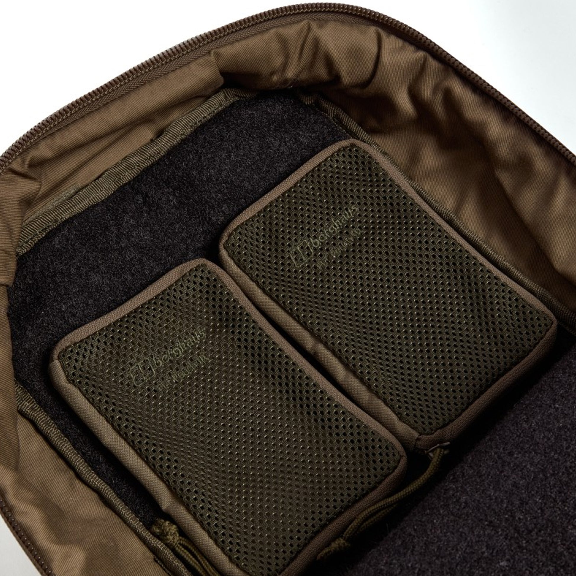 Die LT Cargo Pocket IR passt in jeden FLT-Rucksack, entweder an den Seiten oder an der Vorderseite, unter Verwendung der ACH-Adapter. Die FLT Cargo Pocket IR kann auch einzeln mit den im Lieferumfang enthaltenen FLT-Schultergurten getragen werden.
