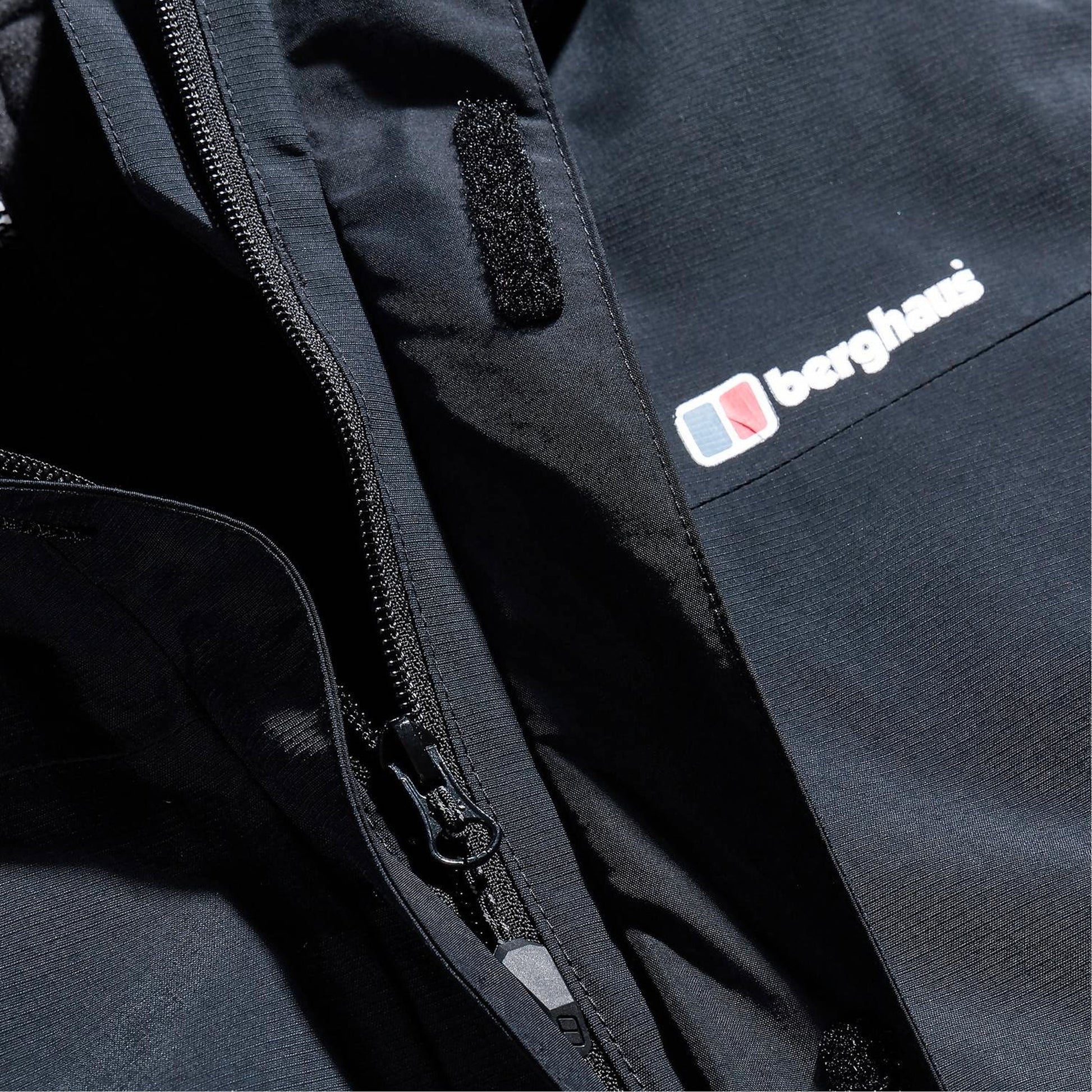 Zwei seitliche Taschen wärmen bei Bedarf die Hände, ein Sturmflap schützt den Reißverschluss vor Nässe und Wind. Der Schnitt der Jacke bietet genug Platz für eine wärmende Mittelschicht – die Berghaus-eigenen Produkte der InterActive-Linie lassen sich sogar einzippen (ACHTUNG: Diese befinden sich nicht im Lieferumfang!!). Die Kapuze lässt sich einfach einrollen und im Kragen verstauen. Alles in allem ist die Hillwalker IA Shell Jacke ein zuverlässiger Begleiter für alle Wetterlagen.