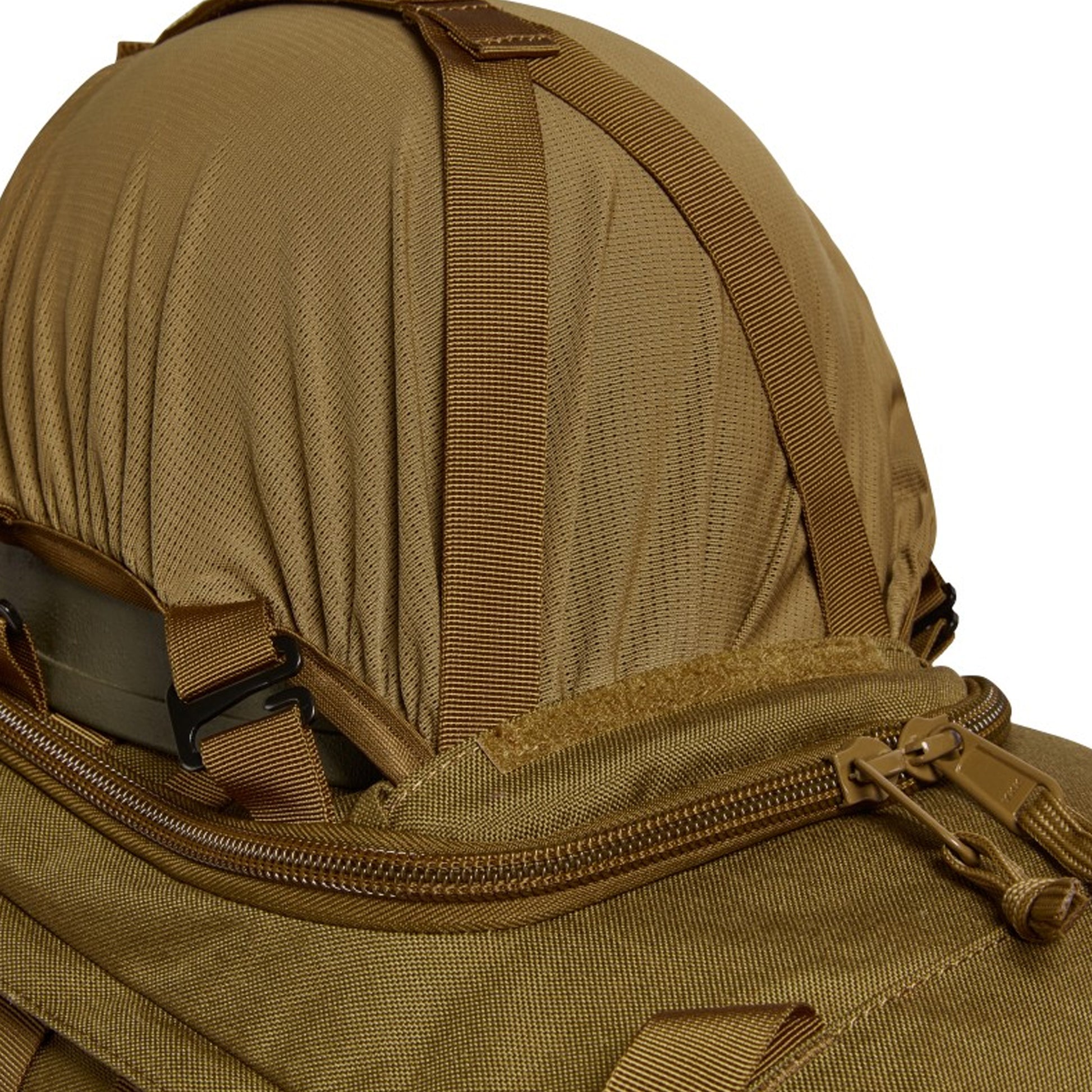 Für die Befestigung zusätzlicher Ausrüstung und Taschen befinden sich innen und außen diverse Befestigungsmöglichkeiten, wie z.B. MOLLE-, MMPS- und FLT-kompatibler Ausrüstung. So können z.B. an den seitlichen Reißverschlüssen MMPS-Seitentaschen (separat erhältlich) befestigt werden. In einem Klettfach der FA-Abdeckung befindet sich zudem eine Netztasche zum Verstauen von Helm, Jacke etc. auf der Außenseite.