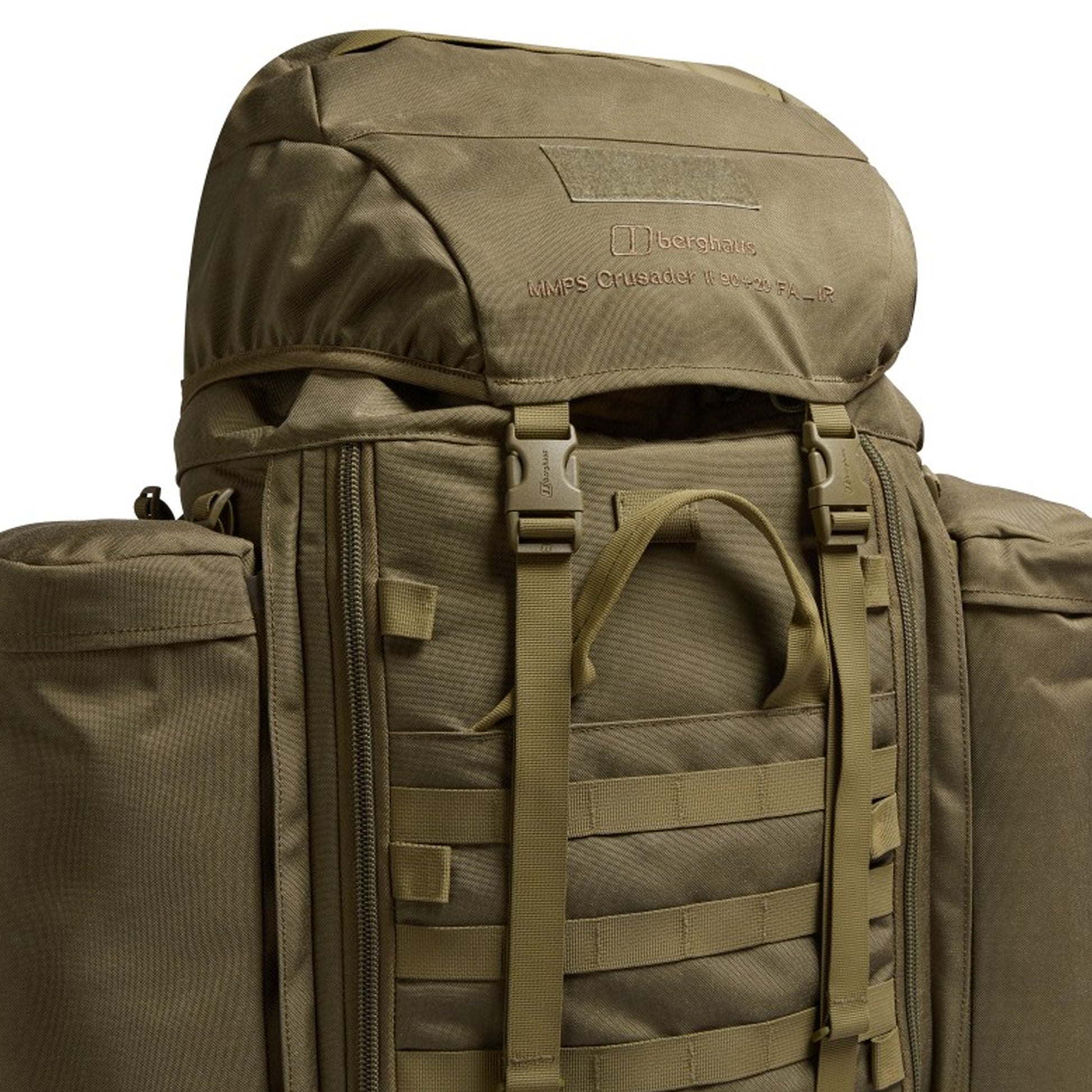 Der Berghaus MMPS Crusader II FA IR ist großer Einsatzrucksack für Mehrtageseinsätze mit Frontzugnag und IRR-Ausrüstung gemäß Bundeswehr TL. Der Frontzugang ermöglicht es dem Anwender, die Ausrüstung schnell aus dem unteren Teil herauszuziehen, ohne andere, oben verstaute Ausrüstung herausnehmen zu müssen.