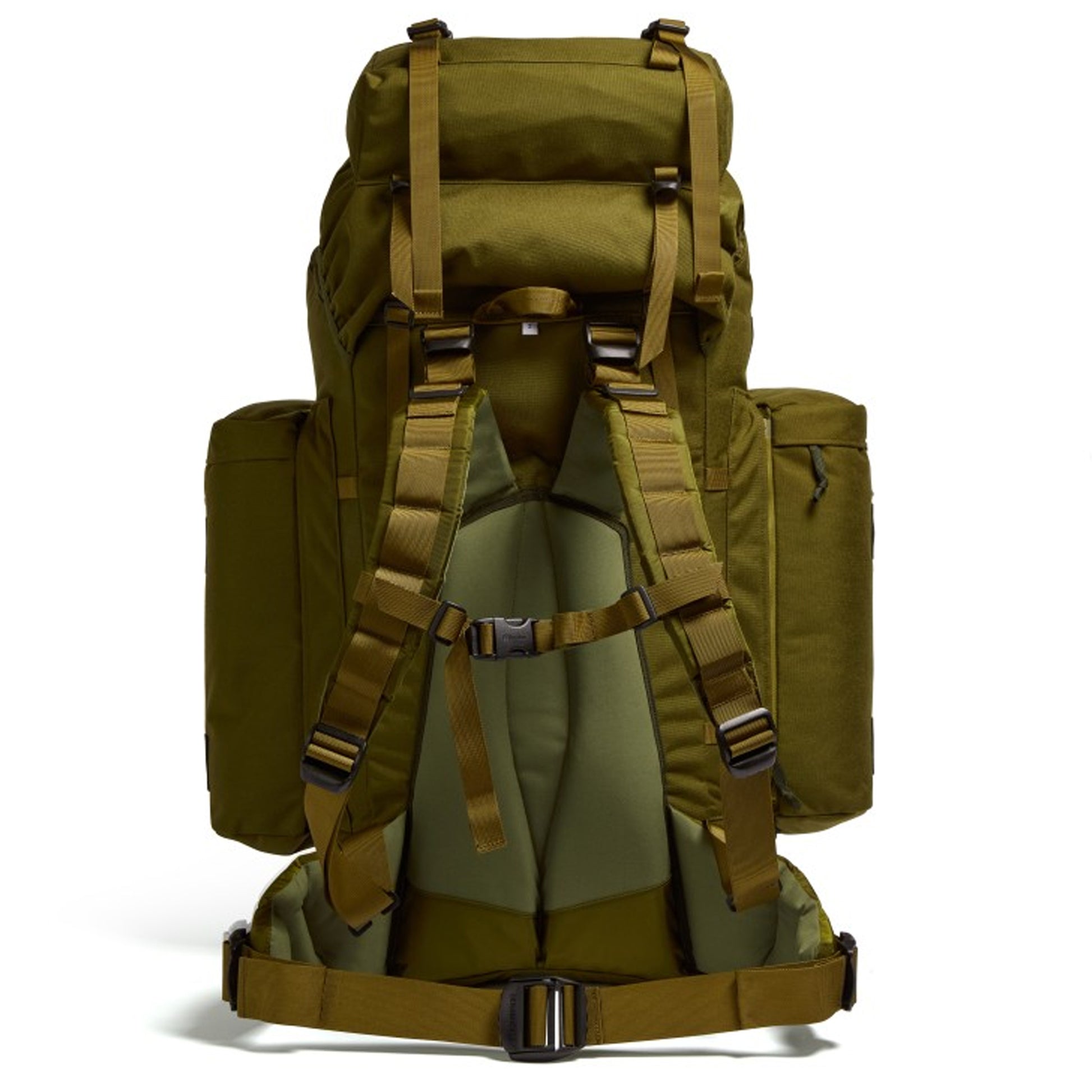 Das Volumen teilt sich auf in das große 80-Liter Hauptfach, Bodenfach und zwei 10-Liter MMPS-Seitentaschen. Das Haupt- und Bodenfach sind durch eine Schneeschürze getrennt, welche mit einem Kordelzug geöffnet oder geschlossen werden kann. Die zwei abnehmbaren MMPS-Seitentaschen mit je 10 Liter Volumen lassen sich mit einem Reißverschluss zu einem Tagesrucksack zusammenfügen (Schultergurte, Brustgurt und Armlehnengurte sind im oberen Fach enthalten). Durch mehrere Kompressionsriemen und MOLLE-Schlaufen lassen zusätzliche Ausrüstungsteile sicher befestigen.