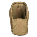 Die gepolsterten Seitenwände und der Innenrahmen bilden eine kastenförmige Konstruktion, die den Rucksack beim Öffnen des Reißverschlusses vollständig aufklappen lässt. An den Innenwänden befinden sich Klettverschlussschlaufen, an denen Taschen zur Organisation persönlicher Gegenstände befestigt werden können.