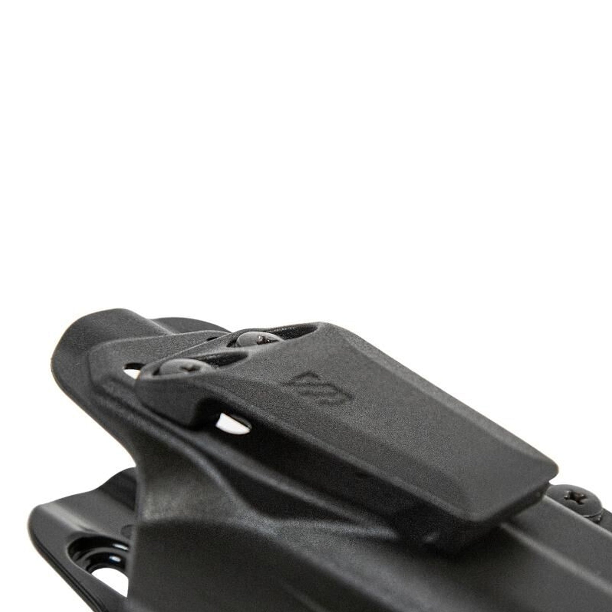 Durch das Spritzgussverfahren ist das Stache Holster dünn, ohne an Festigkeit einzubüßen, und die Kanten sind abgerundet und glatt. Zusammen mit der hervorragenden Verstellbarkeit macht dies das Stache™ Holster zu einem erstaunlich bequemen Begleiter für den ganzen Tag. Ob Links- oder Rechtshänder, niedrig oder hoch, schräg oder gerade.