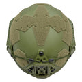 Der Helm ist auf der Stirnseite mit einer NVG-Abdeckung ausgestattet, die mit drei ballistischen Bolzen befestigt ist. Die NVG-Halterung besteht aus strapazierfähigem PA6-Polymer mit Aluminium-Basisabdeckung für höhere Festigkeit und Haltbarkeit. Die universelle Abdeckung ist kompatibel mit den meisten gängigen NVG-Montagearmen und bietet eine sichere Befestigung für Videokameras, Lampen und andere Komponenten.
