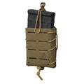 Der interne rutschhemmdne Hypalon®-Patch, die steife Konstruktion, kombiniert mit einer begrenzten oberen Öffnung und einer elastischen Schnur zur Spannungsanpassung, sorgen dafür, dass das Magazin fest in der Magazintasche sitzt und nicht herausfällt. Dank der Steifigkeit der Tasche kann das Magazin mit nur einer Hand leicht wieder verstaut werden.