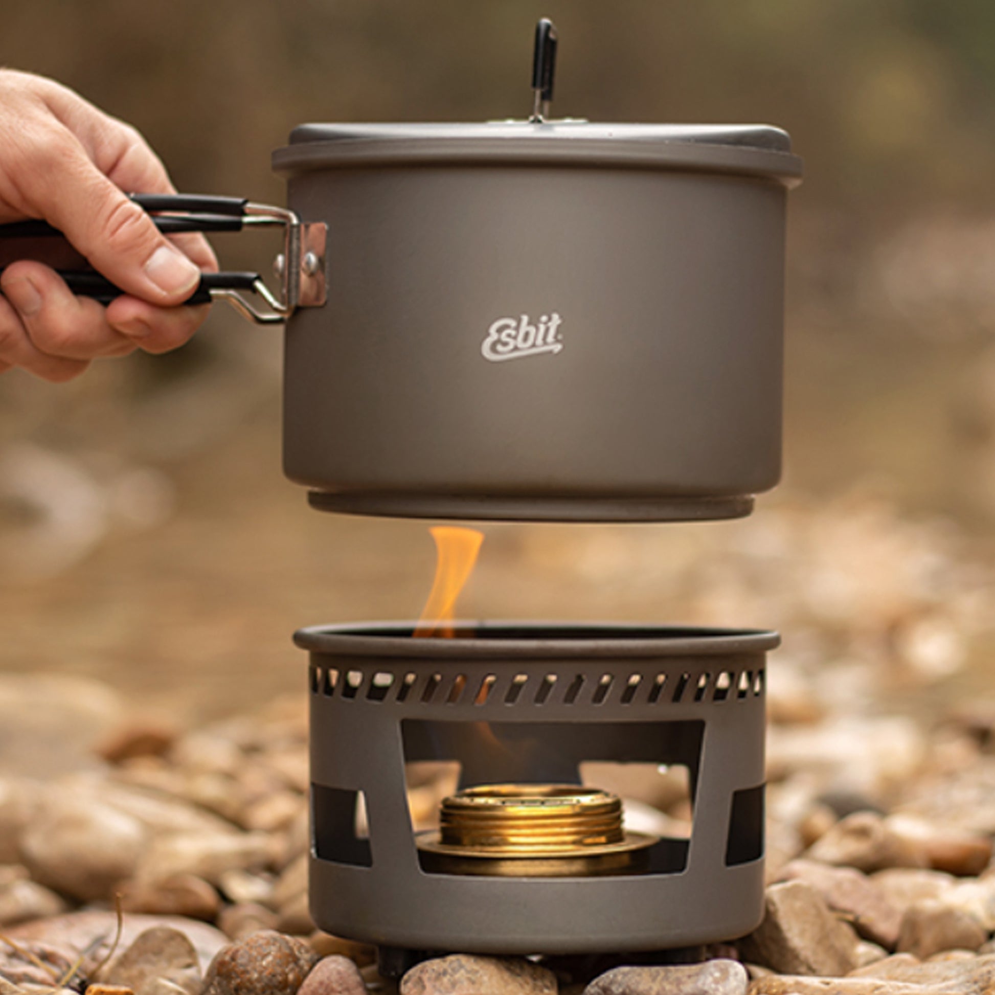 Mit nur etwa 466 g und einem Fassungsvermögen von bis zu 1500 ml ist das Esbit Spirituskochset aus hartanodisiertem Aluminium besonders für längere Touren ein optimaler Begleiter.