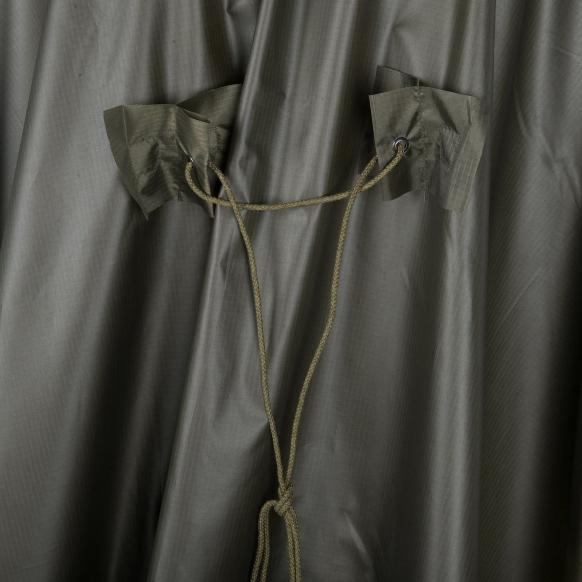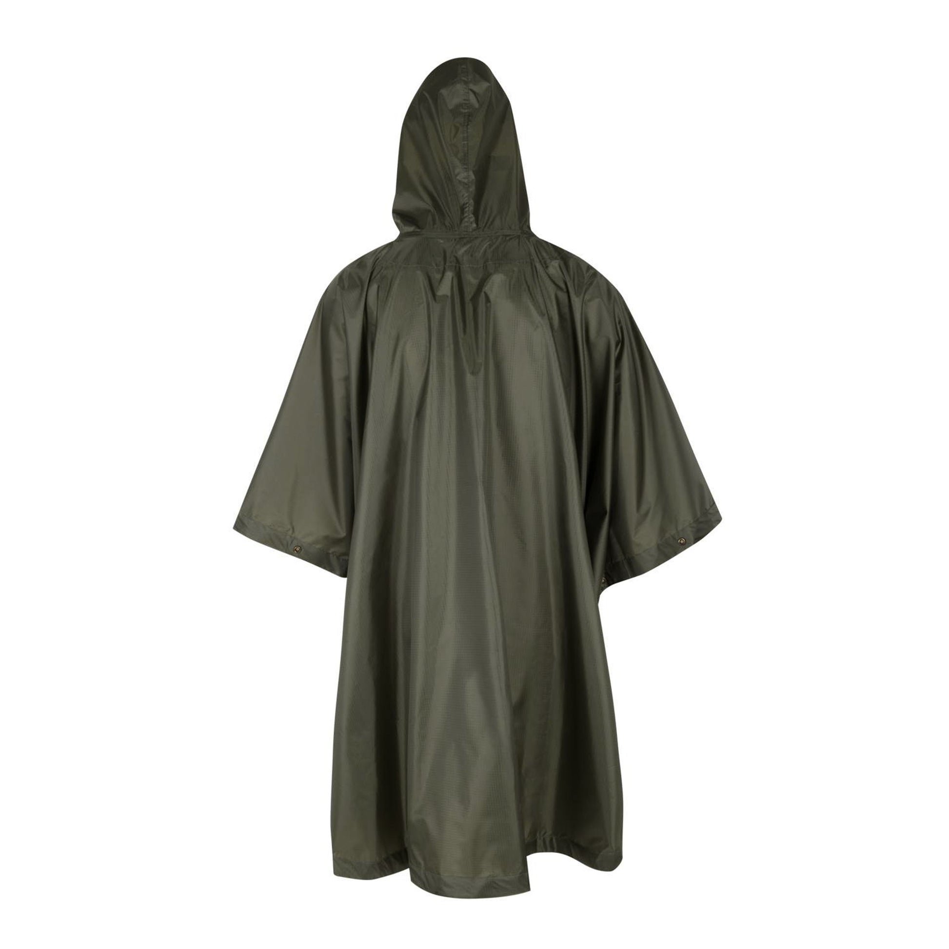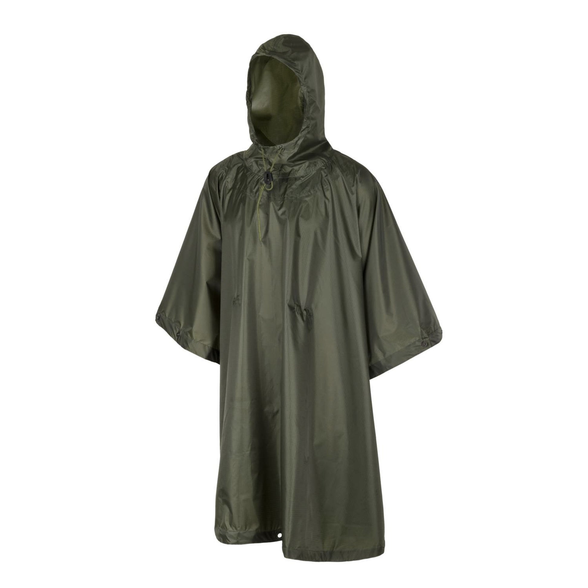 Der Helikon-Tex Poncho ist wasserdicht und aus Rip-Stop Polyester hergestellt. Er ist umsäumt mit Druckknöpfen, sodass zwei Ponchos zusammengeknüpft werden können um einen Unterstand oder ähnliches zu bauen. Zusammengelegt nimmt er lediglich eine Größe von 14 x 22 cm ein und kann sicher in einem mitgelieferten Kompressionssack verstaut werden. Weiterhin hat er eine verstellbare Kapuze, welche sich mit einem Kordanzug sichern lässt.