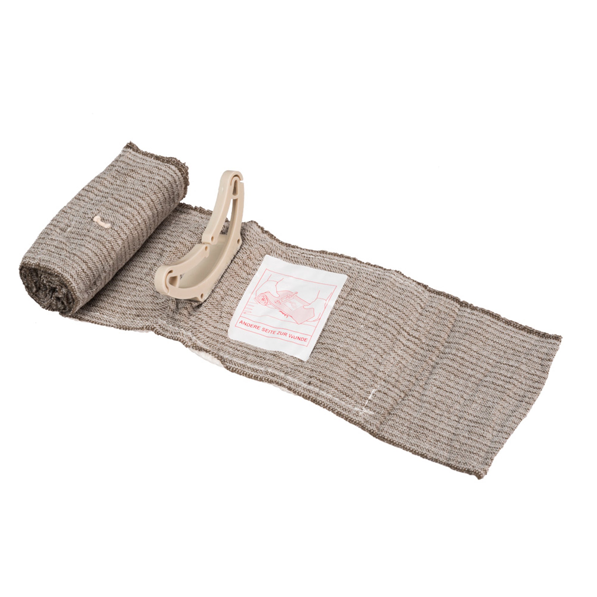 - Verschlussleiste zur festen und sicheren Fixierung des Druckverbands ohne Knoten, Tape oder Klammern
