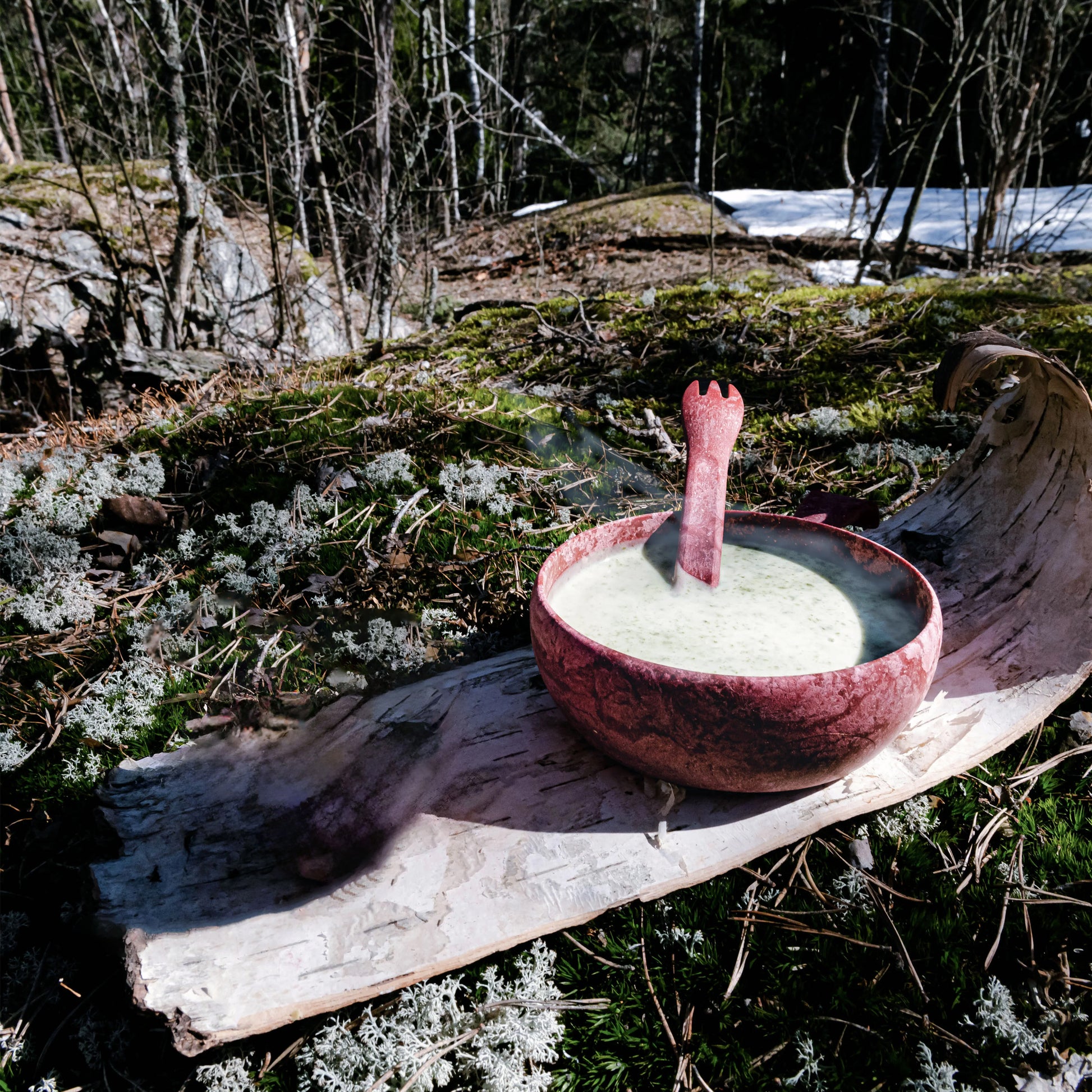 KUPILKA bedeutet, kleine Tasse”. Es ist abgeleitet von, „Kuppi”, dem finnischen Wort für Tasse. Es stammt aus der Zeit vor dem ersten Weltkrieg als finnische Frauen und Männer während der harten Finnischen Winter sich beim Trinken mit der „Kupilka” oder kleinen „Tasse” sich die Hände aufgewärmt haben. Die KUPILKA Produkte werden aus einem Biomaterial hergestellt. Das Biomaterial besteht aus einem Naturfaser-Verbundmaterial, das aus 50% Holzfasern und 50% aus Plastikmaterial (Polypropen) zusammengesetzt ist. Verglichen mit Plastik sind die Vorteile des Naturfaser-Verbundmaterials neben der besseren Hitzebeständigkeit und höheren Nutzungsdauer vor allem die solide Konstruktion. Im Vergleich zu Holz muss das Material nicht gepflegt werden. Zudem nimmt es keine Gerüche auf und ist feuchtigkeitsbeständig. Alle KUPILKA Produkte sind spülmaschinengeeignet. Hochqualitatives Design in Verbindung mit neuen. Technologien ehrt die Natur mit umweltfreundlichem Geschirr. Kupilka ist Ihr bester Gefährte in der Natur.
