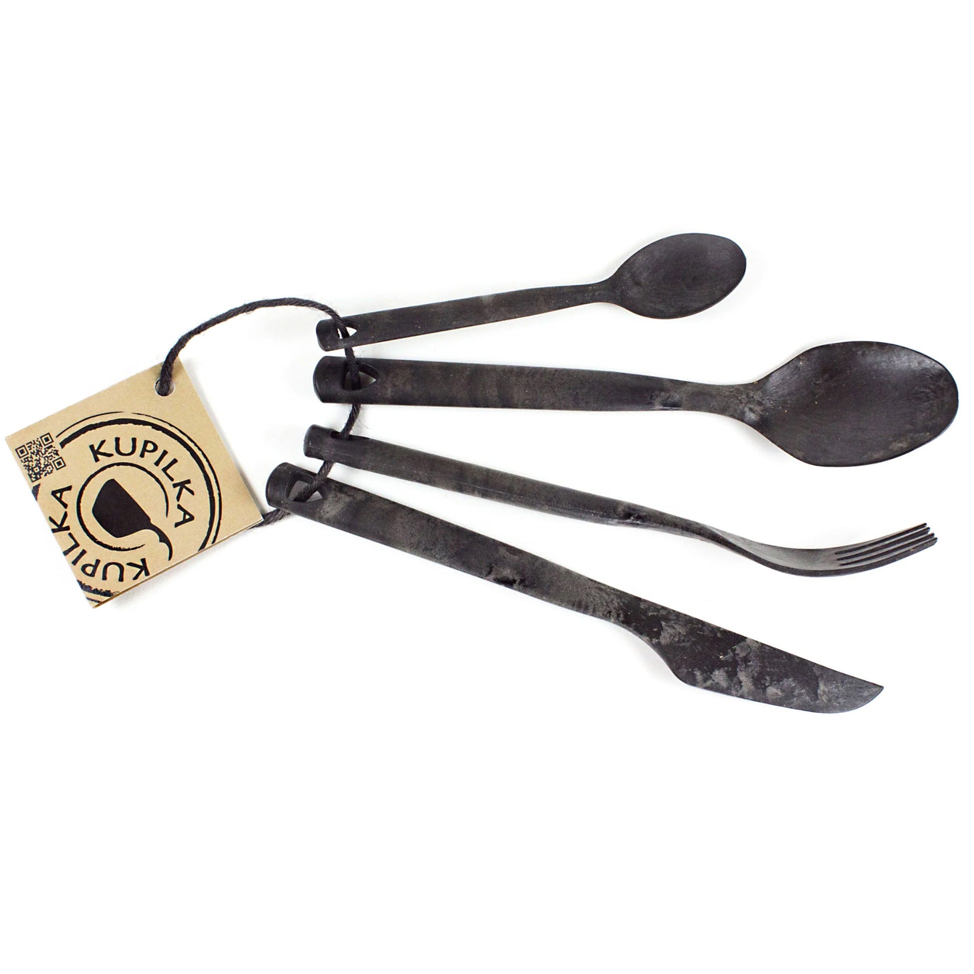 Das 4-teilige Besteckset von KUPILKA lässt sich ganz einfach mit einer Schnur aufhängen und komplettiert Dein Outdoor-Geschirr. Das 4-teilige Besteckset besteht aus einem Messer, einer Gabel, einem Esslöffel und einem Teelöffel.