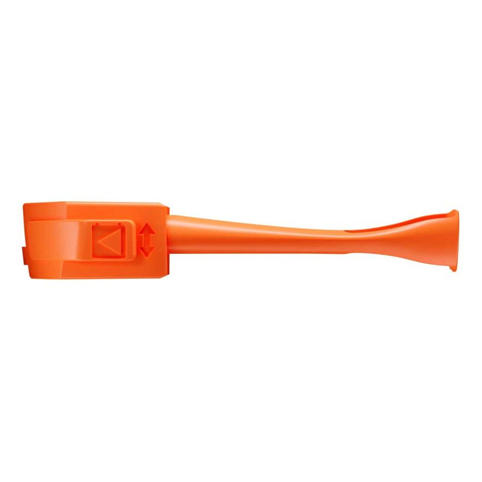 Die Signalpfeife ohne Kugel ist am Ende des Griffs integriert. Sie funktioniert bei jedem Wetter, mit einer Stärke von 110 dB und einer Tragweite von rund 300 Metern im Freiland.