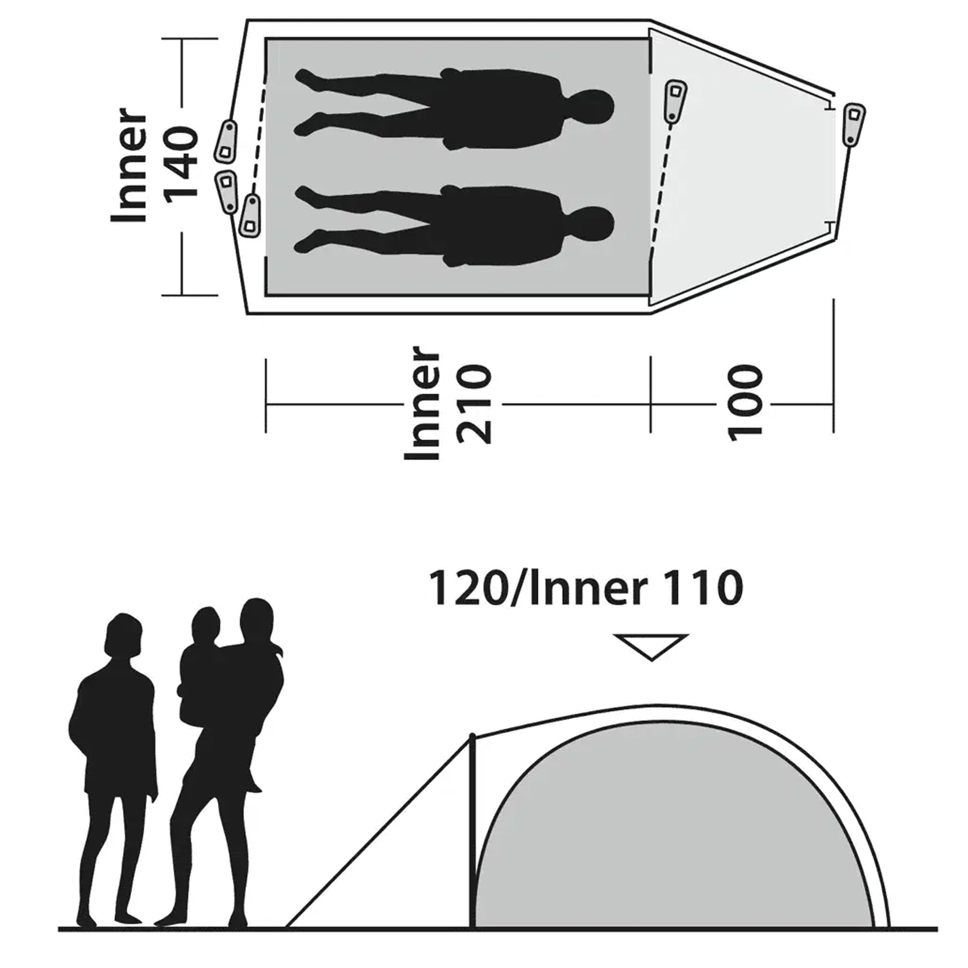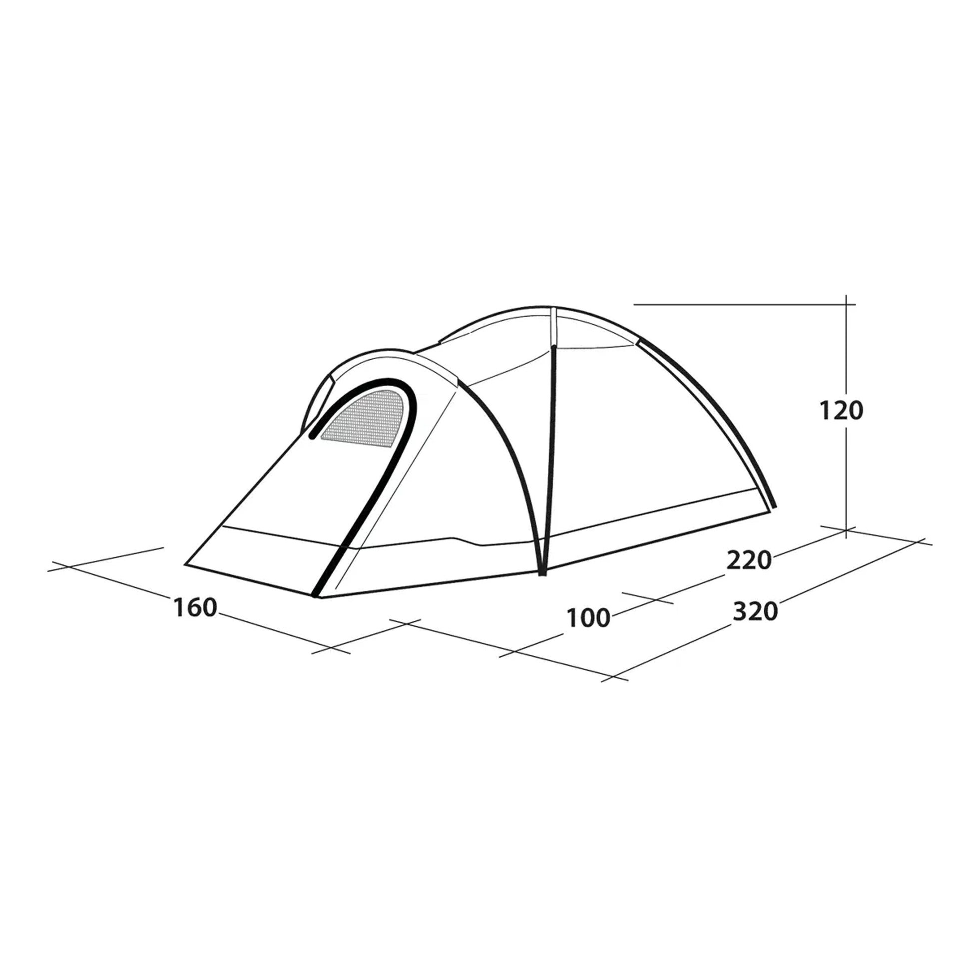 Mit reichlich Platz für zwei Personen erweitert ein praktisches Vordach über dem breiten Eingang den Wetterschutz. Die Bodenplane im Vorraum ist am Innenzelt befestigt, was eine lückenlose und einfachere Aufstellung gewährleistet. Sie kann unter das Zelt gefaltet werden, wenn sie nicht benötigt wird, und bietet zusätzlichen Schutz.