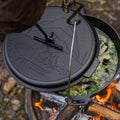 Durch die reduzierte Materialstärke bleibt der Topf leichter als klassische Dutch Oven, ohne an Stabilität zu verlieren, und lässt sich unterwegs mühelos transportieren. Mit seiner praktischen Aufhängung lässt sich der Topf direkt über das Lagerfeuer hängen und gart gleichmäßig, ohne den Boden zu berühren.