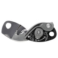 - Blockierunterstützung durch Klemmnocken: ermöglicht eine große Toleranz der Handposition am Bremsseil unabhängig vom Winkel zwischen dem zum Kletterer gerichteten Seil und dem Bremsseil