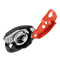 - Sicherungskomfort dank Blockierunterstützung durch Klemmnocken: Bei einem Sturz oder einer Rast des Kletterers/der Kletterin spannt sich das Seil und das Rad blockiert. Dann dreht sich der Klemmnocken und greift in das Seil, um es zu blockieren