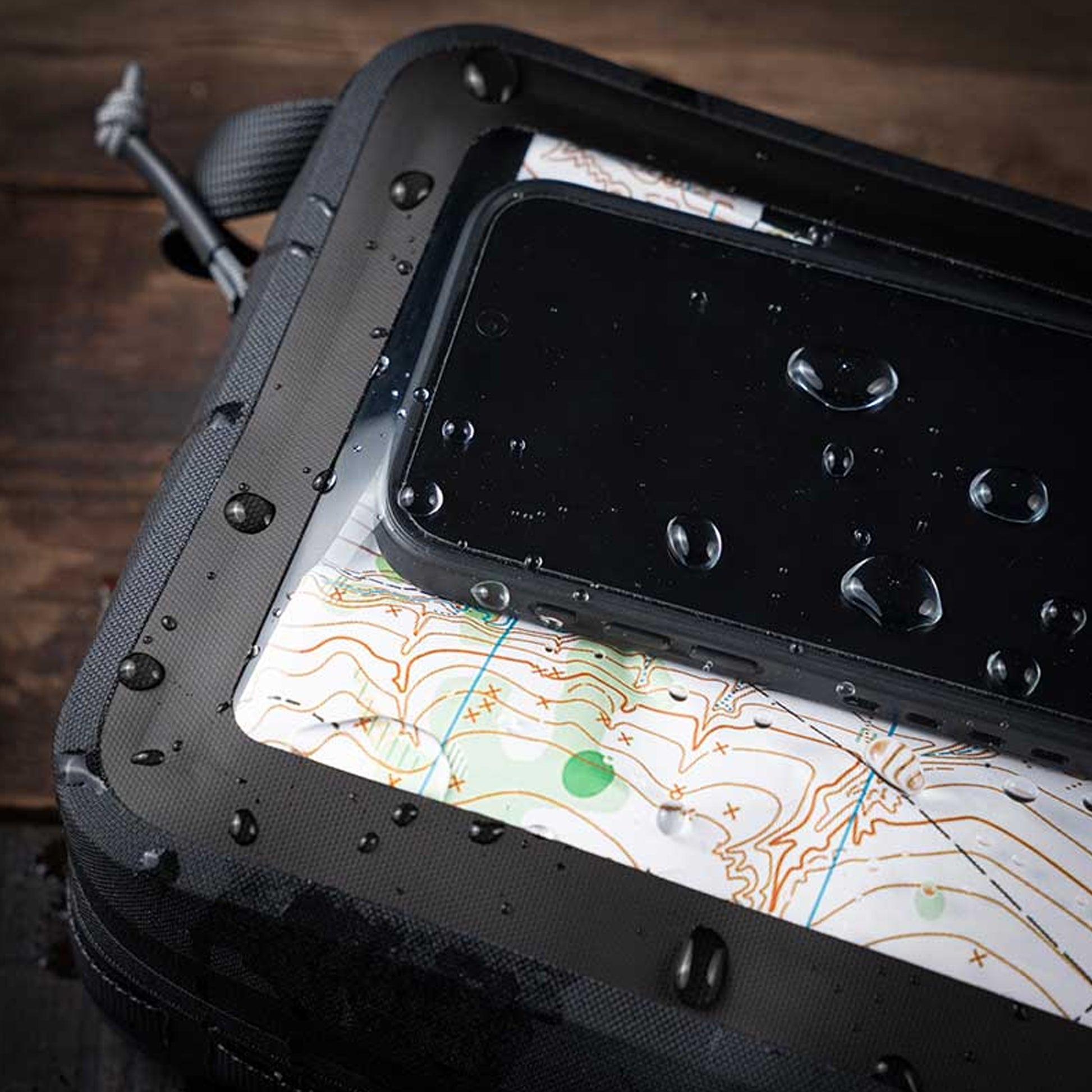 Der Rite in the Rain Monsoon Reach Medium Utility Bag P797 ist eine staub- und spritzwassergeschütze Aufbewahrungstasche mit Touchscreen-kompatiblem Fenster. Behalte Deine Geräte dank des 17 x 12,5 cm großen, touchscreen-kompatiblen Fensters bei jedem Wetter immer im Blick.