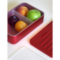 Der Kunststoffeinsatz und der Trenner sind spülmaschinen- und mikrowellengeeignet. Das ausgeklügelte Schließsystem hält die Lunchbox optimal dicht (nicht für Flüssigkeiten!).