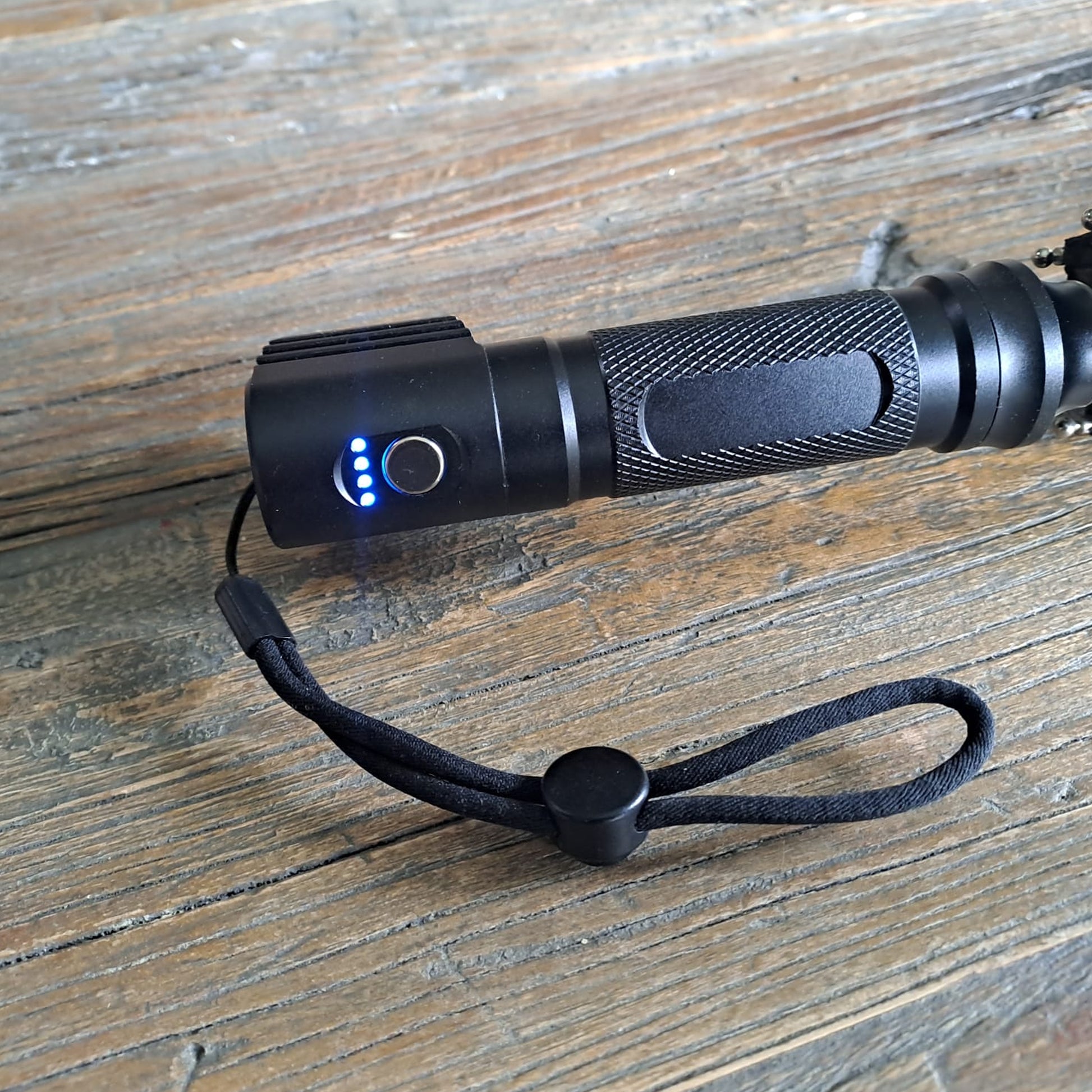 Die Taschenlampe wird mit 3 Batterien vom Typ AAA betrieben (nicht im Lieferumfang enthalten) und besitzt eine 4-stufige Batterieanzeige.