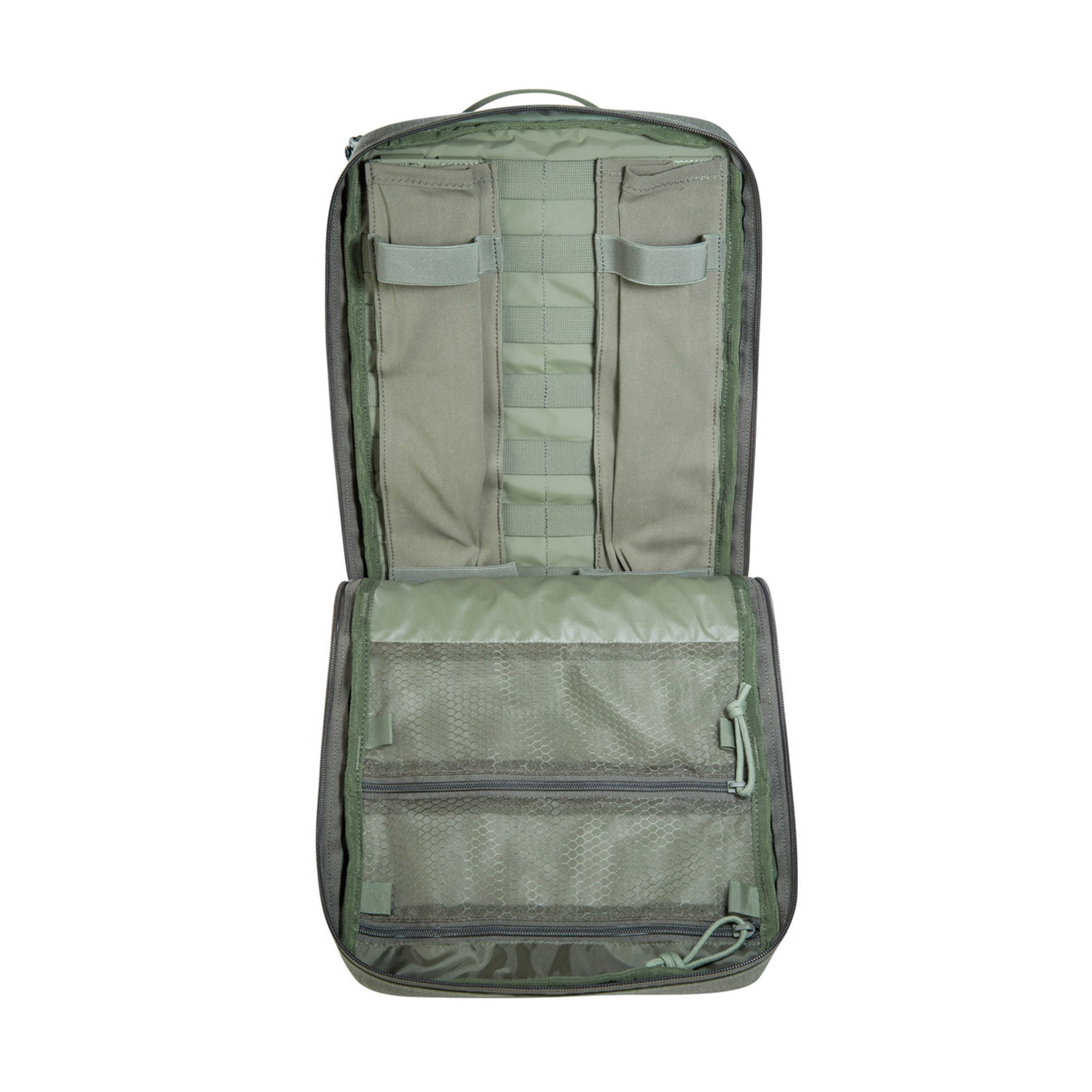 Der TT Breacher Pack IRR bietet ein Hauptfach mit zwei herausnehmbaren Werkzeugröhren, welches nach unten verlängert werden, um lange Bolzenschneider zu verstauen. Das Frontfach besitzt einen umlaufenden Reißverschluss und lässt sich komplett aufklappen. Es verfügt über herausnehmbare, elastische Taschen für Sprengmittel und Netz-Innentaschen für Kleinteile.